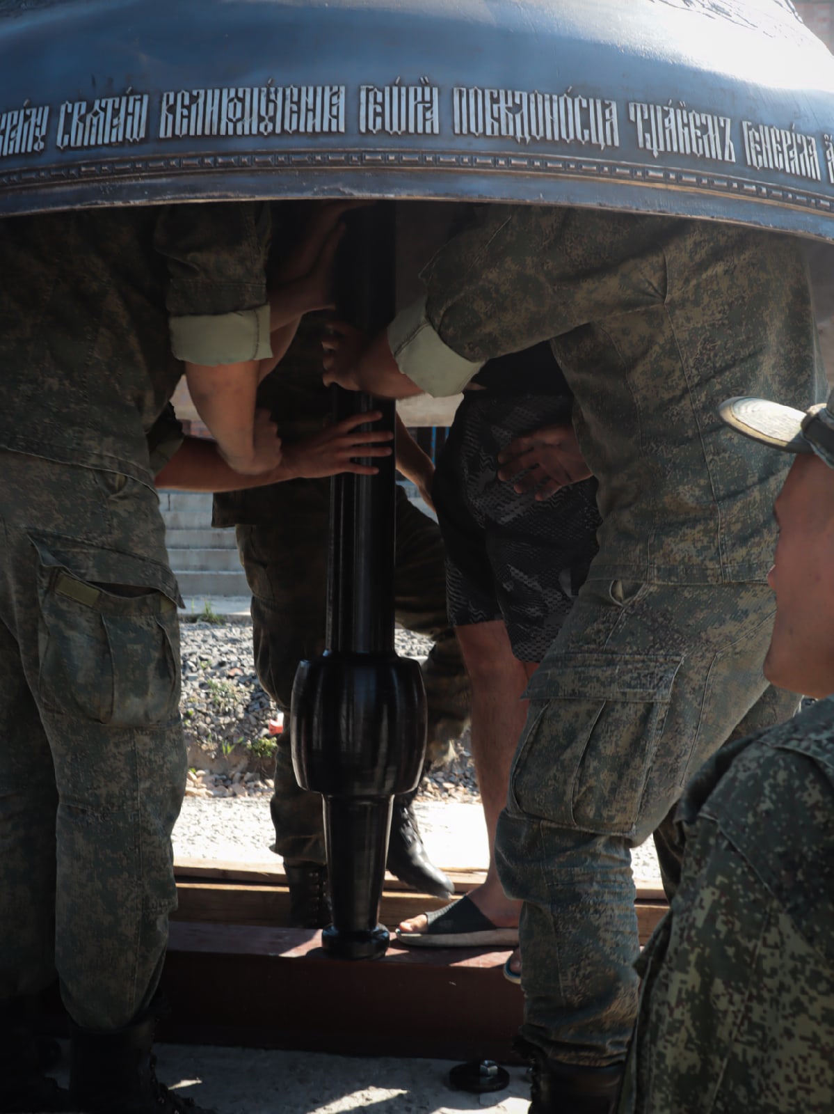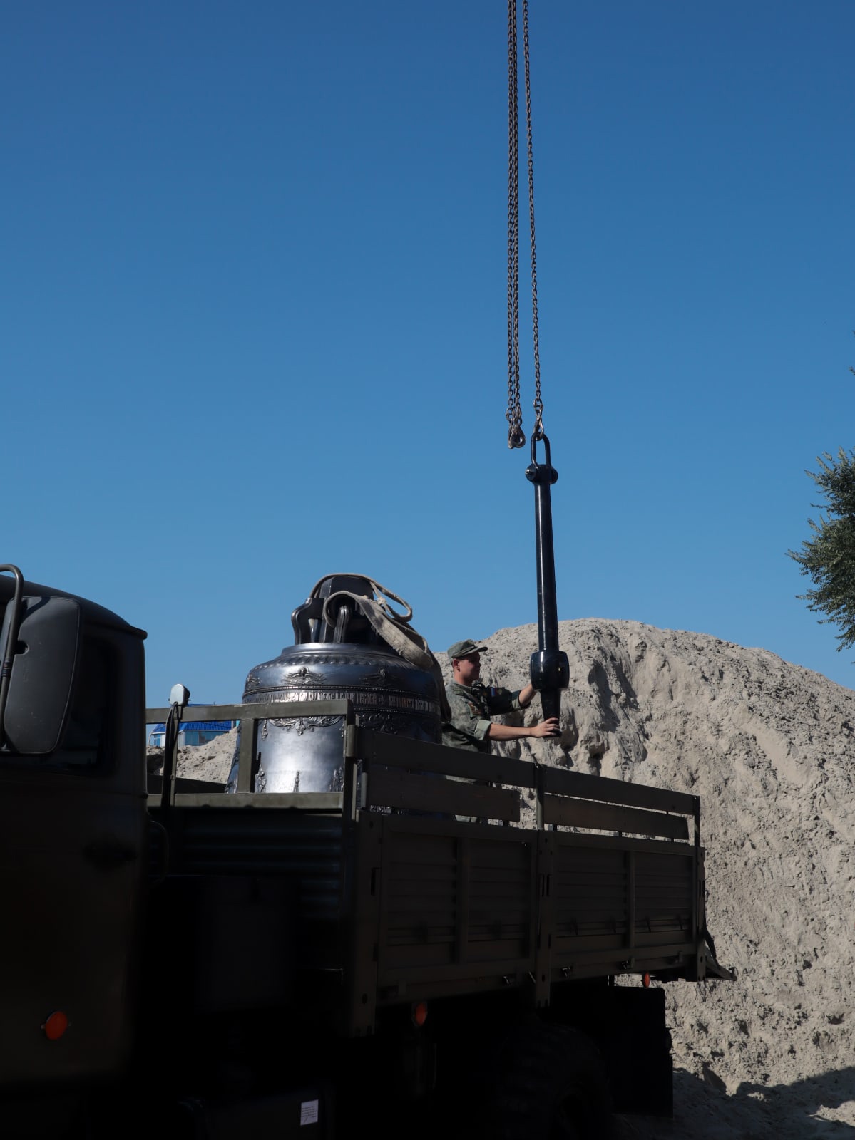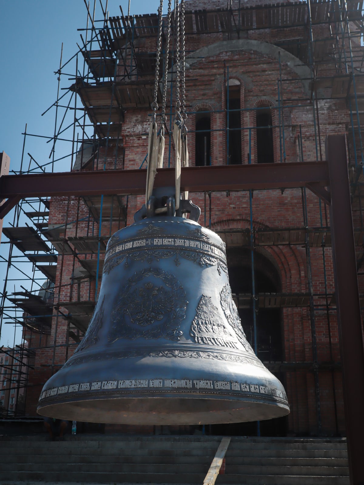 Воскресное утро 29 августа началось со встречи Благовестника для колокольни храма святого Георгия Победоносца — главного православного храма Южного военного округа. Колокол весом 4.5 тонны временно установлен у входа в строящийся храм святого Георгия.