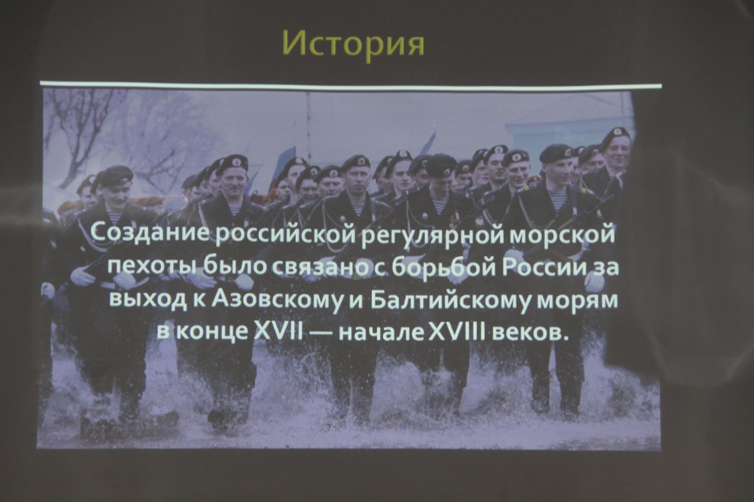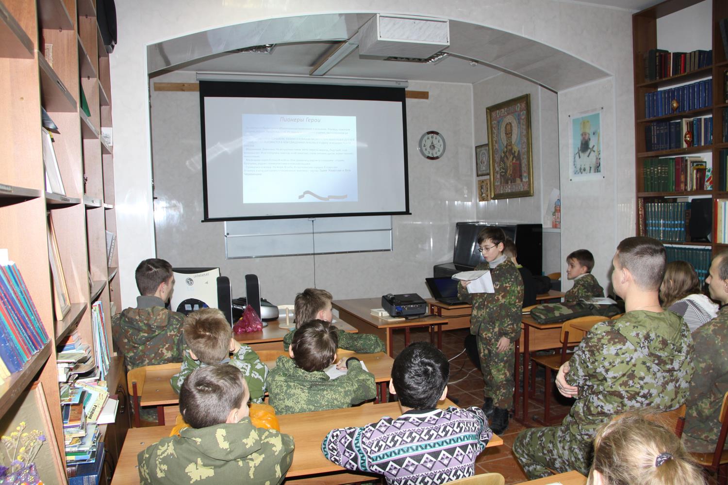 29 декабря 2013 года - для воспитанников воскресной школы прихода Святого Георгия Победоносца был организован урок мужества. В этот раз дети и преподаватели показали презентации, которые сопровождали устными комментариями. Темы презентаций были посвящены военной истории нашего государства, великим полководцам России, а также истории создания морской пехоты Российского Флота.