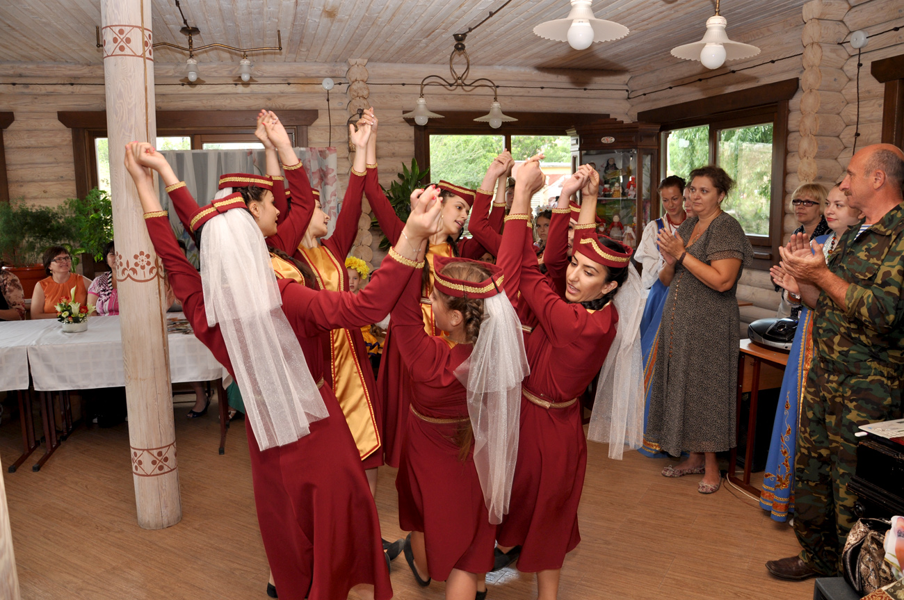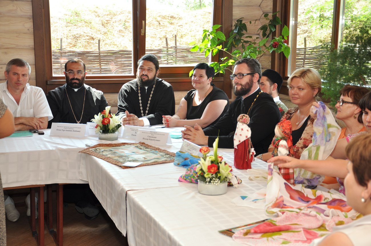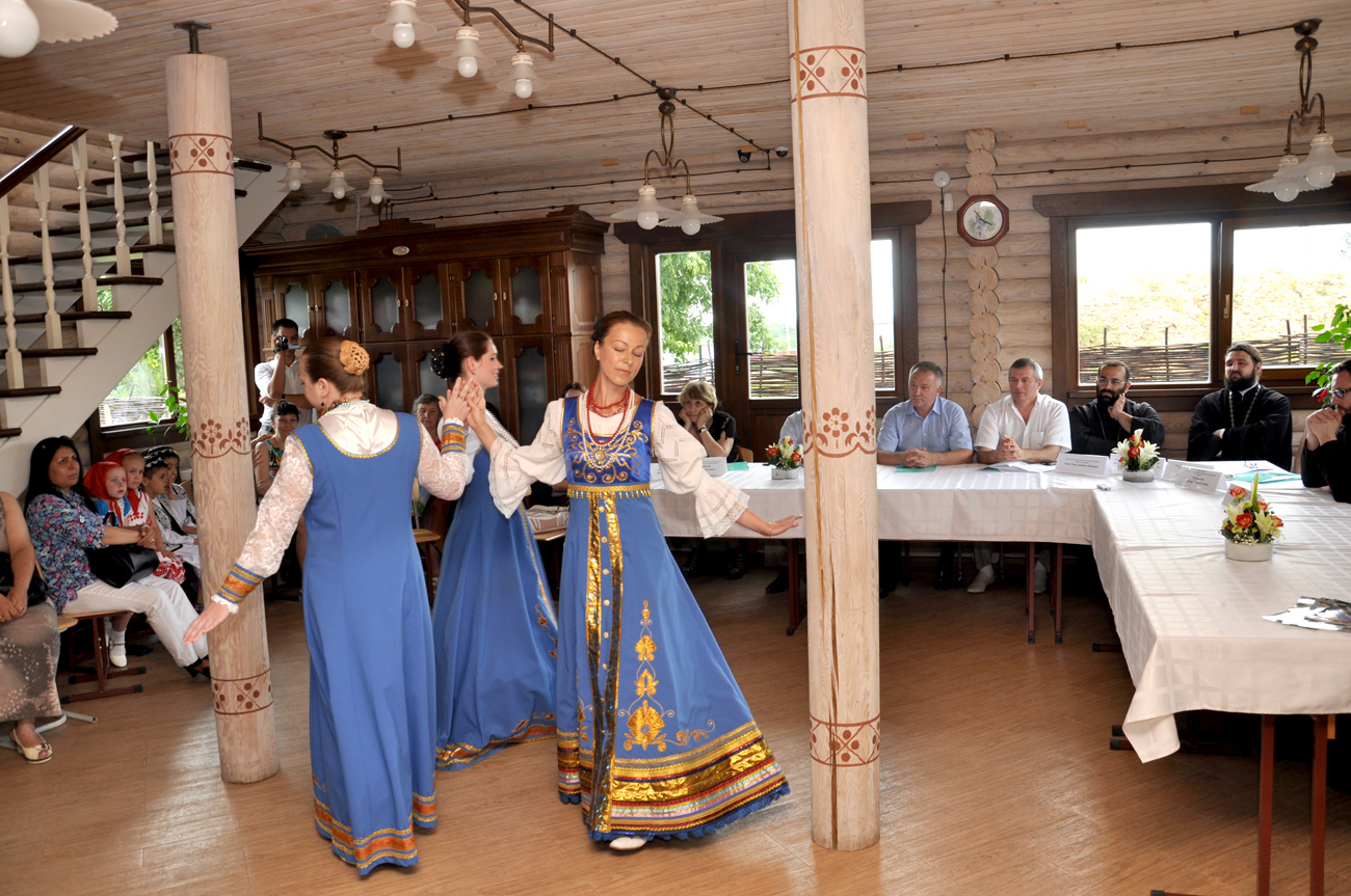 Участников круглого стола и детей, которые прибыли с ними, встретил Руководитель Отдела по взаимоотношениям Церкви и общества Ростовской-на-Дону епархии настоятель прихода протоиерей Валерий Волощук. Отец Валерий провел экскурсию по храмовому комплексу, в которой рассказал об истории создания храма, особенностях постройки. Гости посетили иконописную мастерскую в которой диакон Александр Литвиненко рассказал им об иконописном искусстве и показал иконы, которые создаются в мастерской. Затем участники круглого стола собрались в новом здании воскресной школы, где перед ними выступили дети, представив в танце, песнях и стихах свою страну, религию, свою Родину. Председатель Духовно-патриотического центра святого Георгия Победоносца поделился с участниками заседания своим опытом работы с детьми и допризывной молодежью, руководители направлений курсов "Традиционная тряпичная кукла" и "Батик" рассказали о своих успехах и планах на будущее и о том, как эти направления сплочают людей, воспитывают в них стремление к духовному росту, пробуждают интерес к познаванию истории родного края.