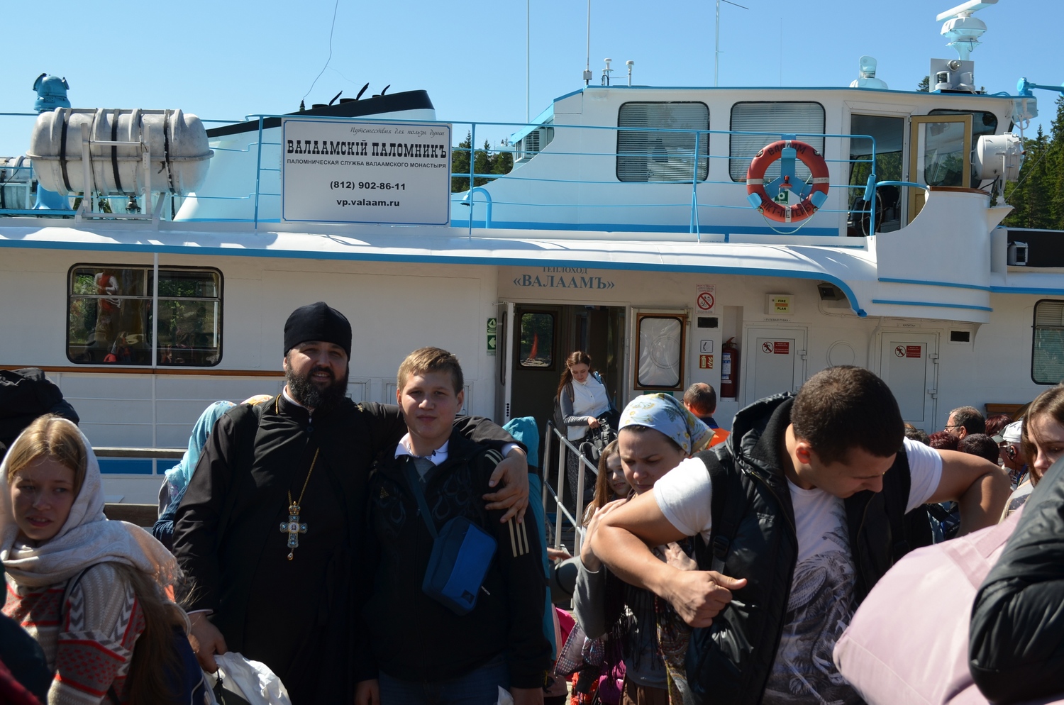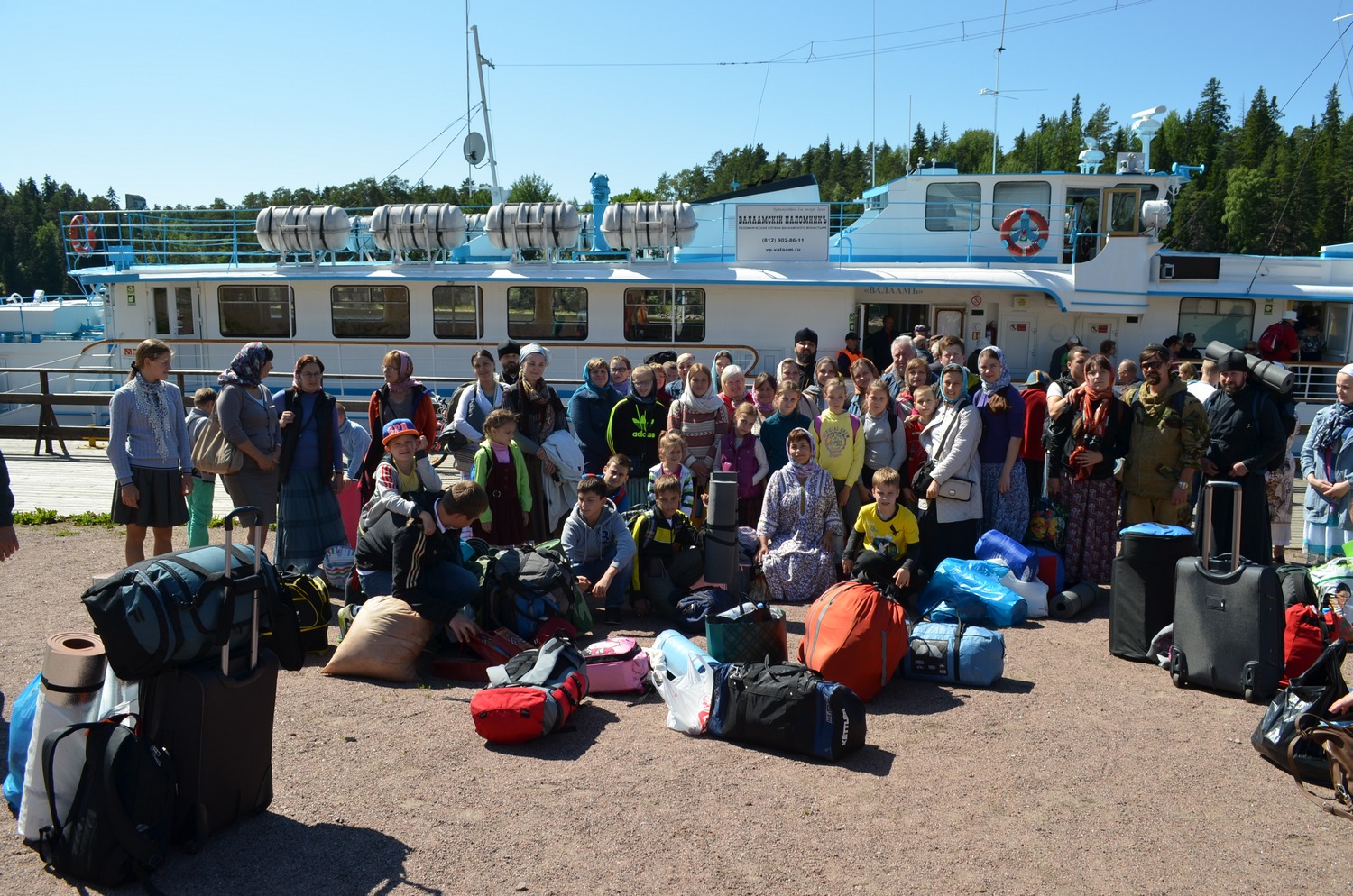 25 и 26 июля наши паломники провели на острове Валаам в Спасо-Преображенском Валаамском монастыре, который считается оплотом Православия на Русском Севере и уважительно называется Северным Афоном. На остров паломников доставил монастырский теплоход «Валаам». Поскольку Валаам является местом массового паломничества и туризма (за сезон монастырь посещает от 100 до 200 тысяч паломников и туристов), все номера в монастырской гостинице были расписаны еще за полгода и нашей группе пришлось размещаться в прихваченных с собой палатках на специально оборудованной территории на живописном берегу Ладожского озера. Ужинали и обедали в паломнической трапезной за длинным столом большой и дружной семьей, по-особенному сплотившейся за время поездки. Православные экскурсоводы Паломнической службы Валаама провели для нашей группы знакомство с Центральной усадьбой монастыря, организовали посещение Никольского скита и поход по маршруту к Воскресенскому скиту (Новый Иерусалим) и Гефсиманскому скиту на горе «Елеон», а также посещение Игуменского кладбища.