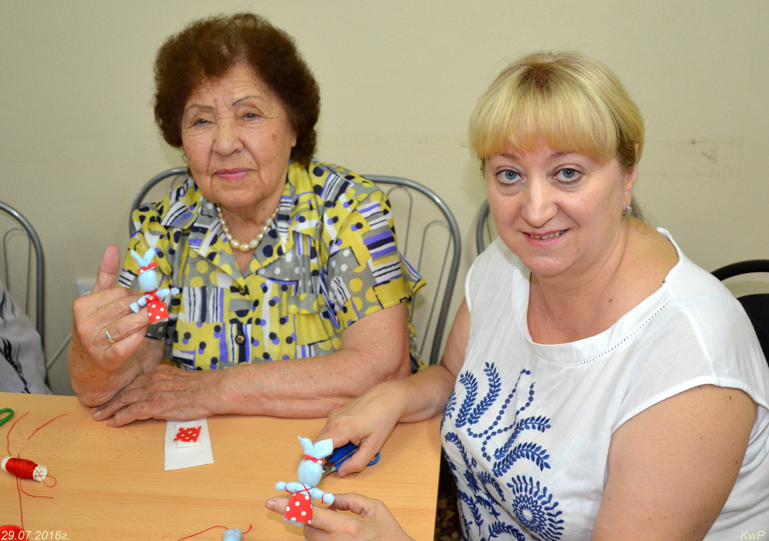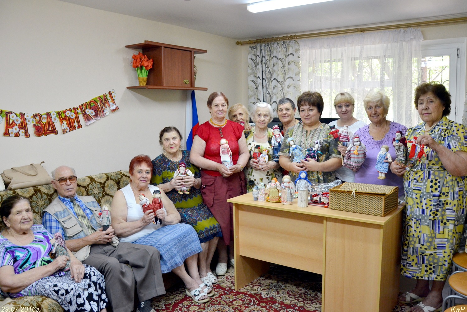 29 июля 2016 года руководитель семейного центра «Дар Божий» Матвеева Наталья Павловна провела мастер-класс «Народная кукла» в нашем окормляемом центре дневного пребывания пенсионеров Советского района. Были показаны куклы, изготовленные руками наших мастериц, рассказаны истории возникновения и какое большое значение имела кукла на Руси для воспитания детей. Каждый мог попробовать себя в этом интересном деле. В конце встречи была сделана общая фотография на память.