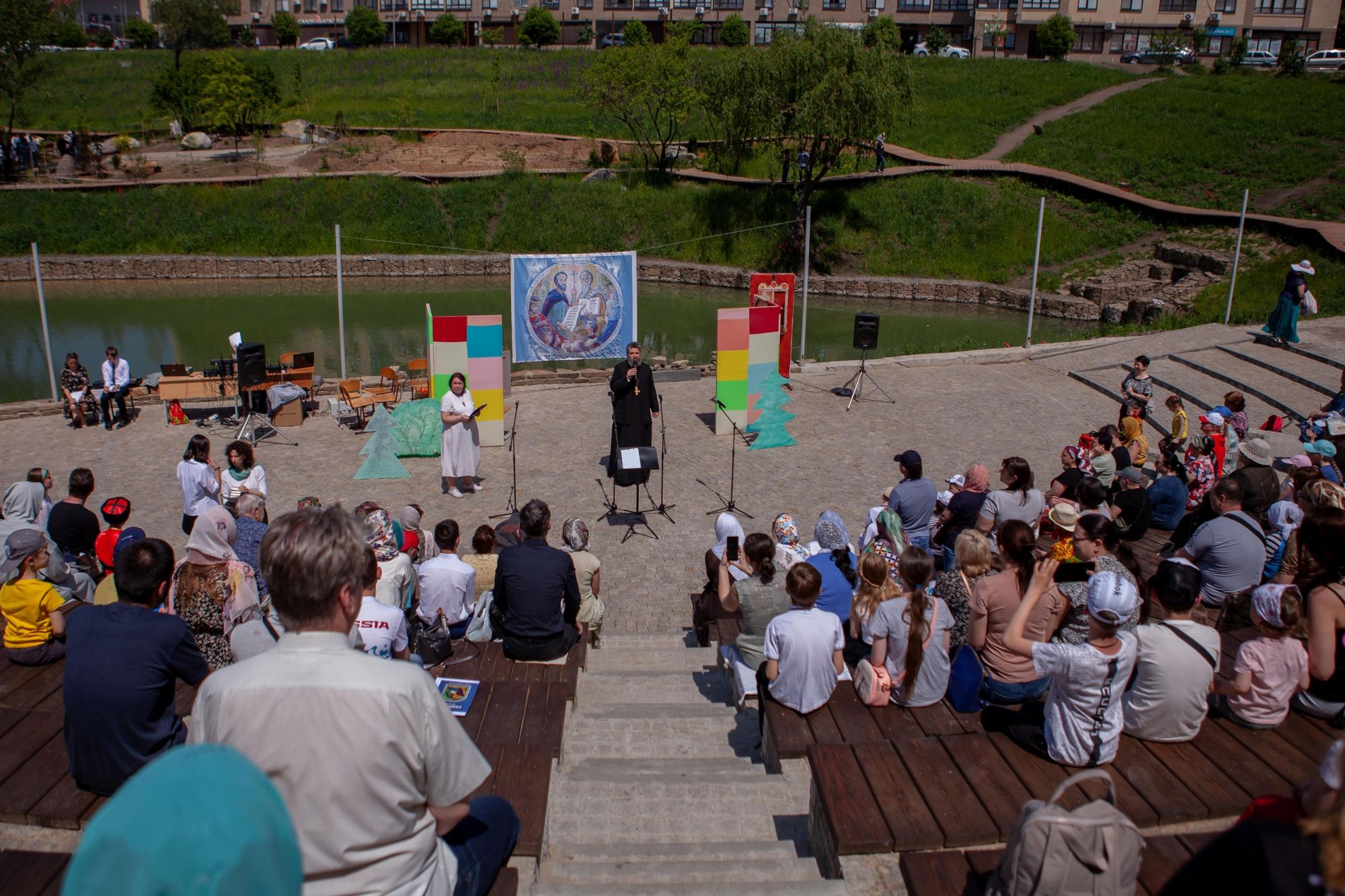 Мероприятие получилось настоящим праздником не только для прихожан, но и для жителей микрорайона, отдыхающих в этот день в Георгиевском парке. А концерт стал символическим открытием нового амфитеатра!