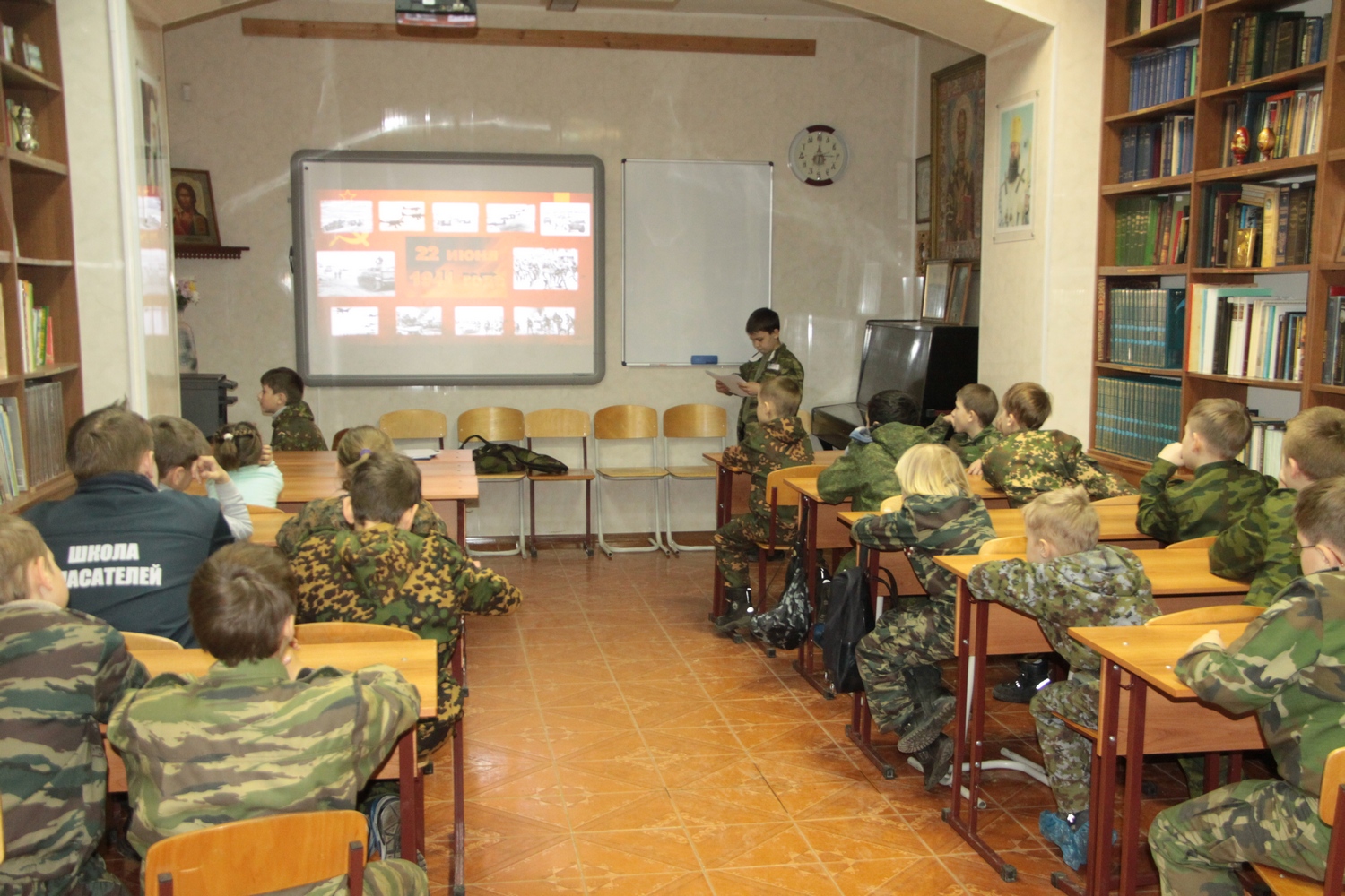 В этот же день для учащихся был организован «Урок мужества» по подготовке к службе в Российской Армии. В рамках урока воспитанником Александром Воробьевым была представлена презентация, посвященная Великой Отечественной Войне.