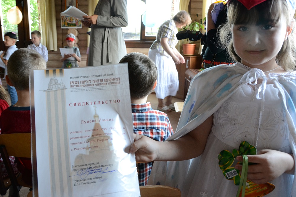 25 мая дошкольный образовательный центр «Родничок» прихода святого Георгия Победоносца собрал своих воспитанников и их родителей на праздник, посвященный выпуску детей в школу. Открыл торжественную часть настоятель храма протоиерей Валерий Волощук, который поздравил детей, сказал слова напутствия и вручил им свидетельства выпускников дошкольного центра.