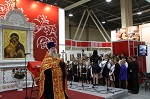 Отдельный стенд выставки посвящен жизни нашего прихода, посетив его, гости могут узнать о храме Иоанна Воина, приходском духовенстве, заказать молебен, получить информацию о ходе строительства храма святого Георгия Победоносца, о деятельности художественных мастерских, сестричества, а также других направлениях работы прихода.