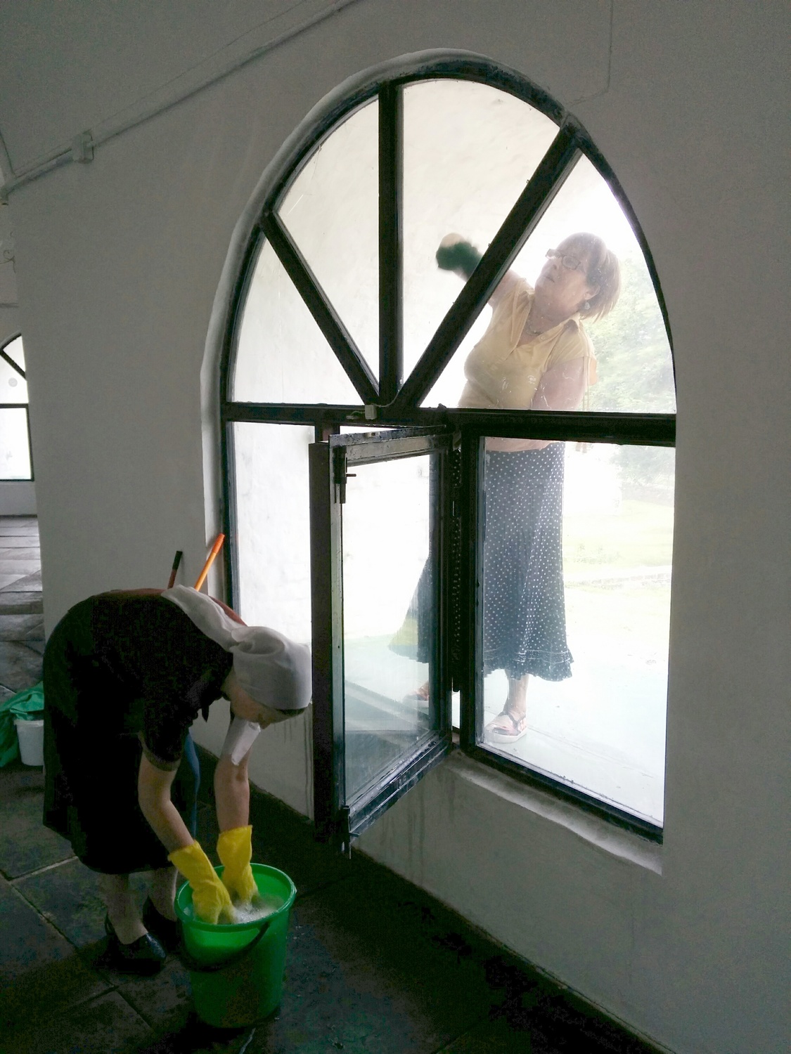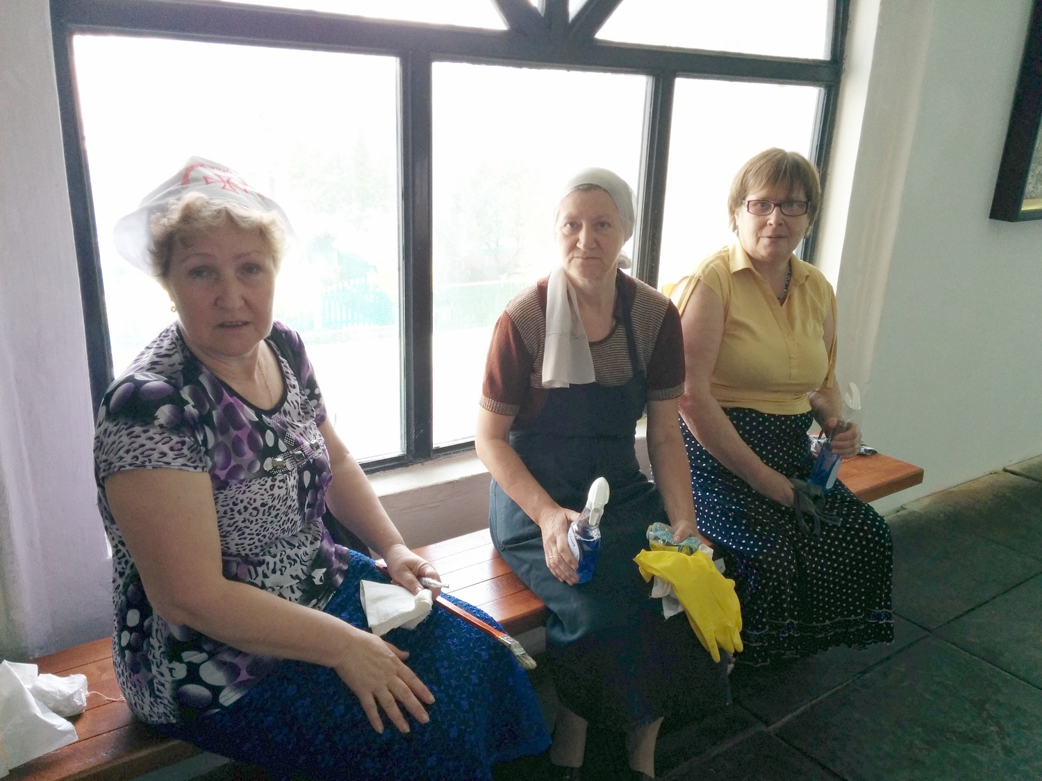 В понедельник 23 мая наш приход принял заботу о Воскресенском войсковом соборе. С этого дня по благословению настоятеля прихода Святого Георгия Победоносца протоиерея Валерия Волощука сестричество, активисты и прихожане регулярно посещают станицу Старочеркасскую, где ведут обширную работу по воссозданию исторического облика собора и колокольни. 28 мая состоялся субботник и первая служба.