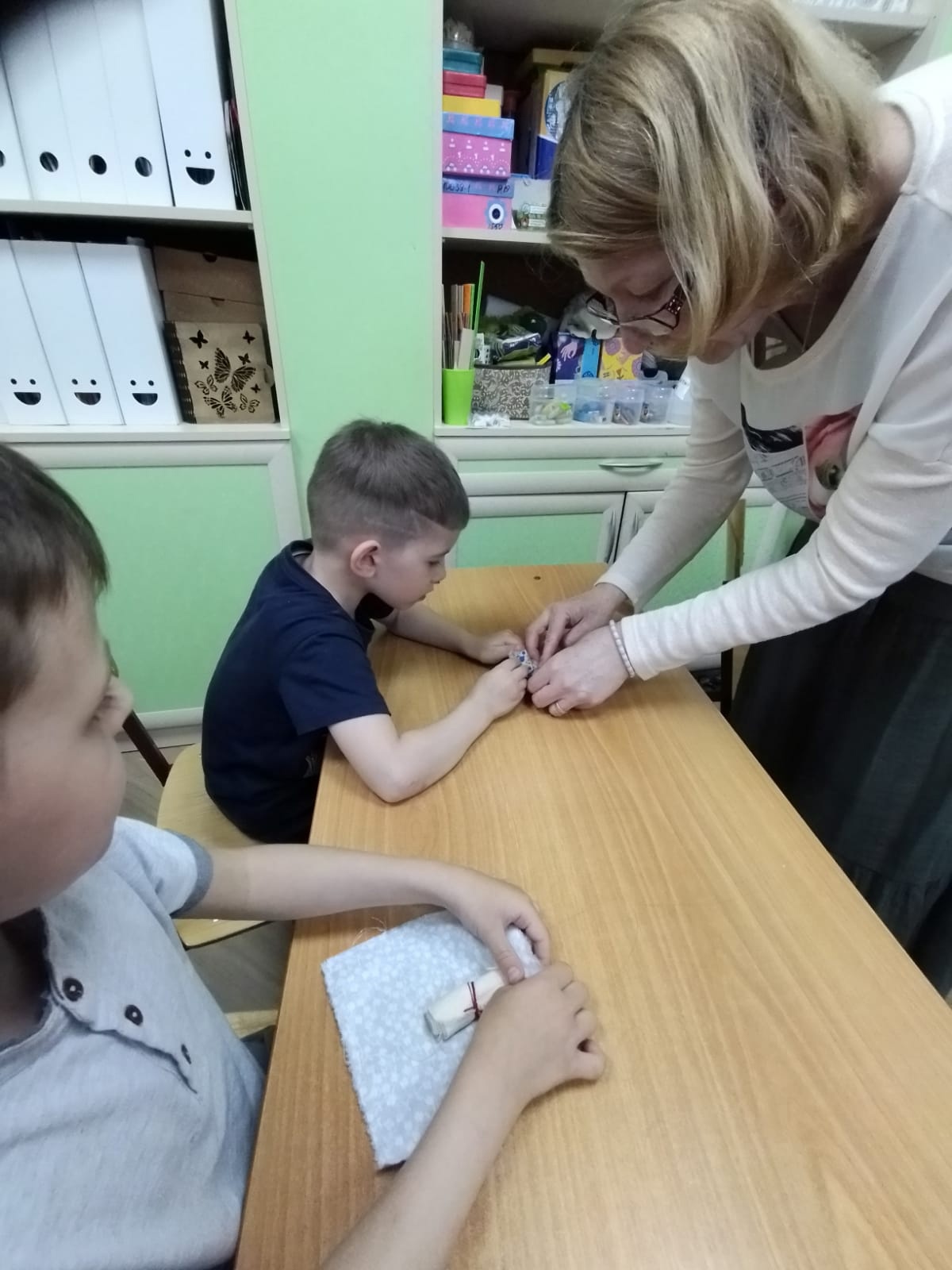 К ребятам из дошкольной группы "Родничок" пришли мастерицы по изготовлению народной куклы (руководитель - Наталья Матвеева). Мастер-класс для малышей провела Анна Ахашева со своей дочерью Ариной. Дети под руководством мастериц совершили необыкновенное путешествие вглубь истории кукол. Ребята с большим удивлением узнали, что раньше игрушек, как таковых, не существовало и приходилось всей семьей создавать их своими руками! Очень много нового и интересного дети узнали о русской игрушке.
