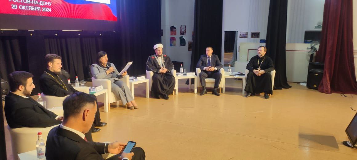 Штатный клирик главного воинского храма Южного военного округа, доктор юридических наук иерей Алексий Овчинников в рамках круглого стола «Межконфессиональное и межнациональное взаимодействие в современном российском обществе» представил доклад на тему «Духовно-нравственные и социокультурные предпосылки межэтнического и межконфессионального мира». В своем выступлении священник отметил актуальность обсуждаемой темы, подчеркнул существенную значимость любых мероприятий, направленных на поиск решения проблем в сфере межэтнических и межконфессиональных отношений, конфликтов на почве этноконфессиональных отношений, которые в условиях сетевых войн используются для развала государства изнутри. Для Юга России это крайне важно, так как здесь большая концентрация представителей разных этносов и конфессий.