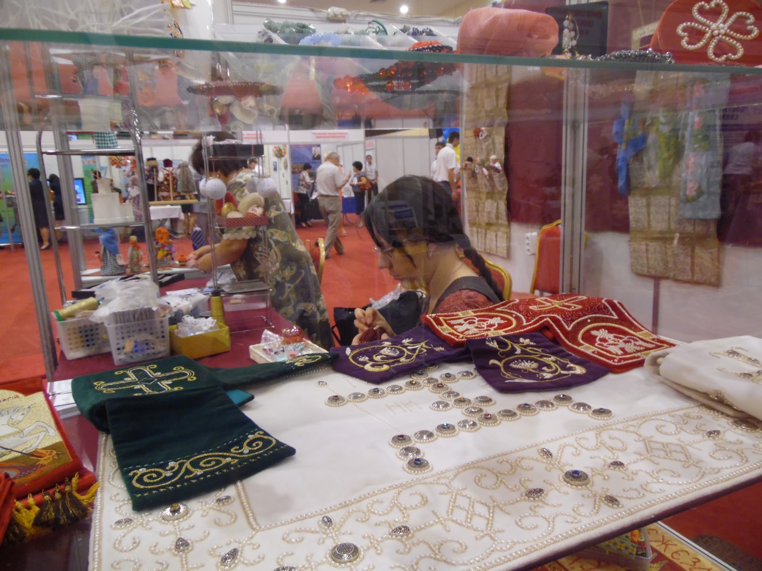 Золотошвейная мастерская и Мастерская Народной куклы приняли участие в выставке-ярмарке социальных товаров и услуг для граждан старшего возраста, а также провели мастер-классы по изготовлению пасхальных яиц и игровой кукле.