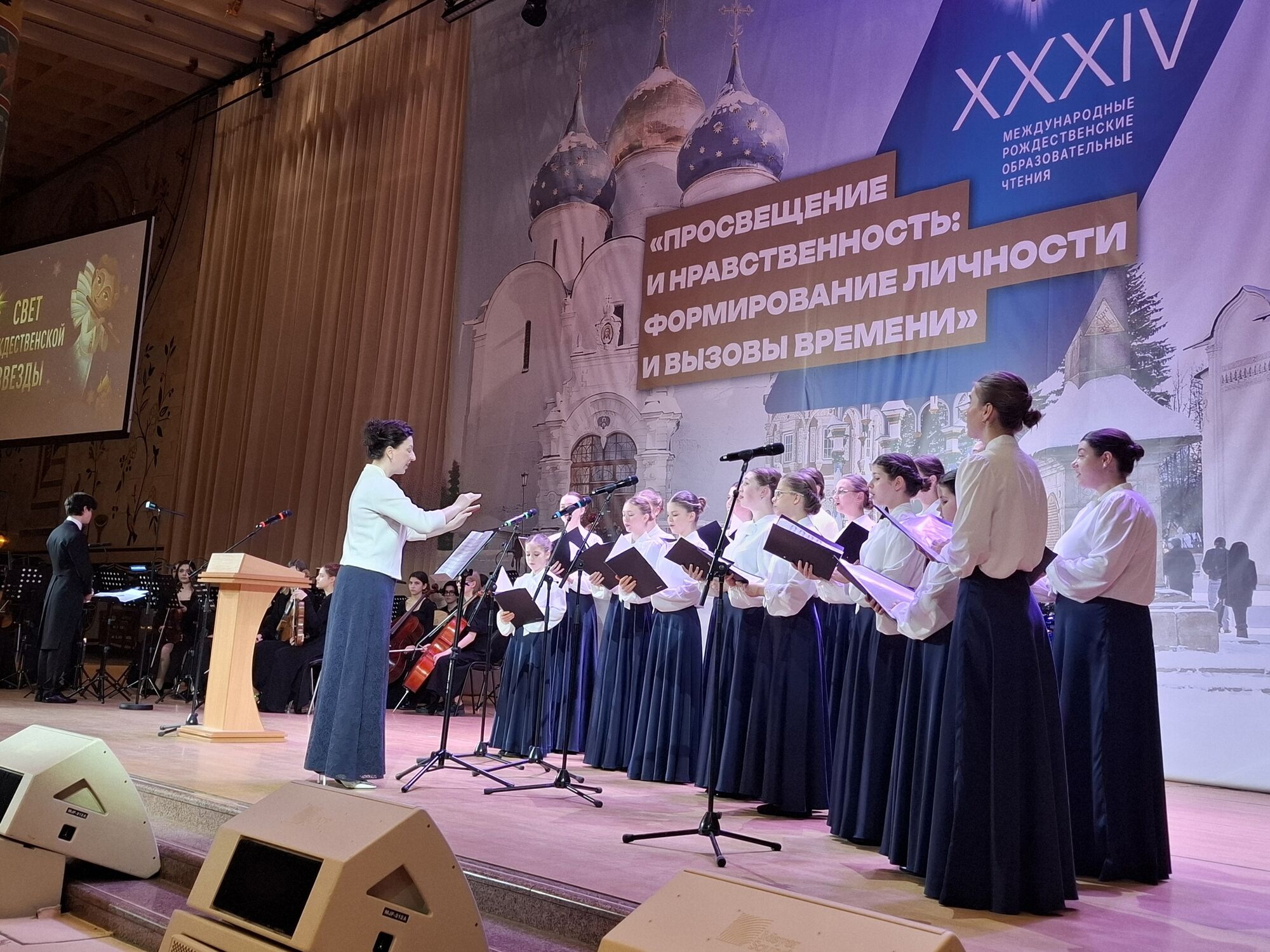 Особой страницей в работе нашей делегации на минувших XXXIV Международных Рождественских чтениях стало выступление церковного девичьего хора «Русь». Коллектив, состоящий из воспитанниц и выпускниц приходской воскресной школы, представил в Москве фестиваль «Свет Рождественской звезды». Этот уникальный проект, зародившийся двенадцать лет назад в сотрудничестве прихода святого Георгия Победоносца со школами Советского района Ростова-на-Дону, создал особое пространство для духовно-нравственного воспитания, глубокого погружения в евангельскую историю и личного переживания праздника Рождества его участниками. Именно системный подход стал основой для дальнейшего развития и распространения проекта на другие районы города, что в итоге позволило представить его на федеральном уровне как успешную форму сотрудничества епархии и городской системы образования.