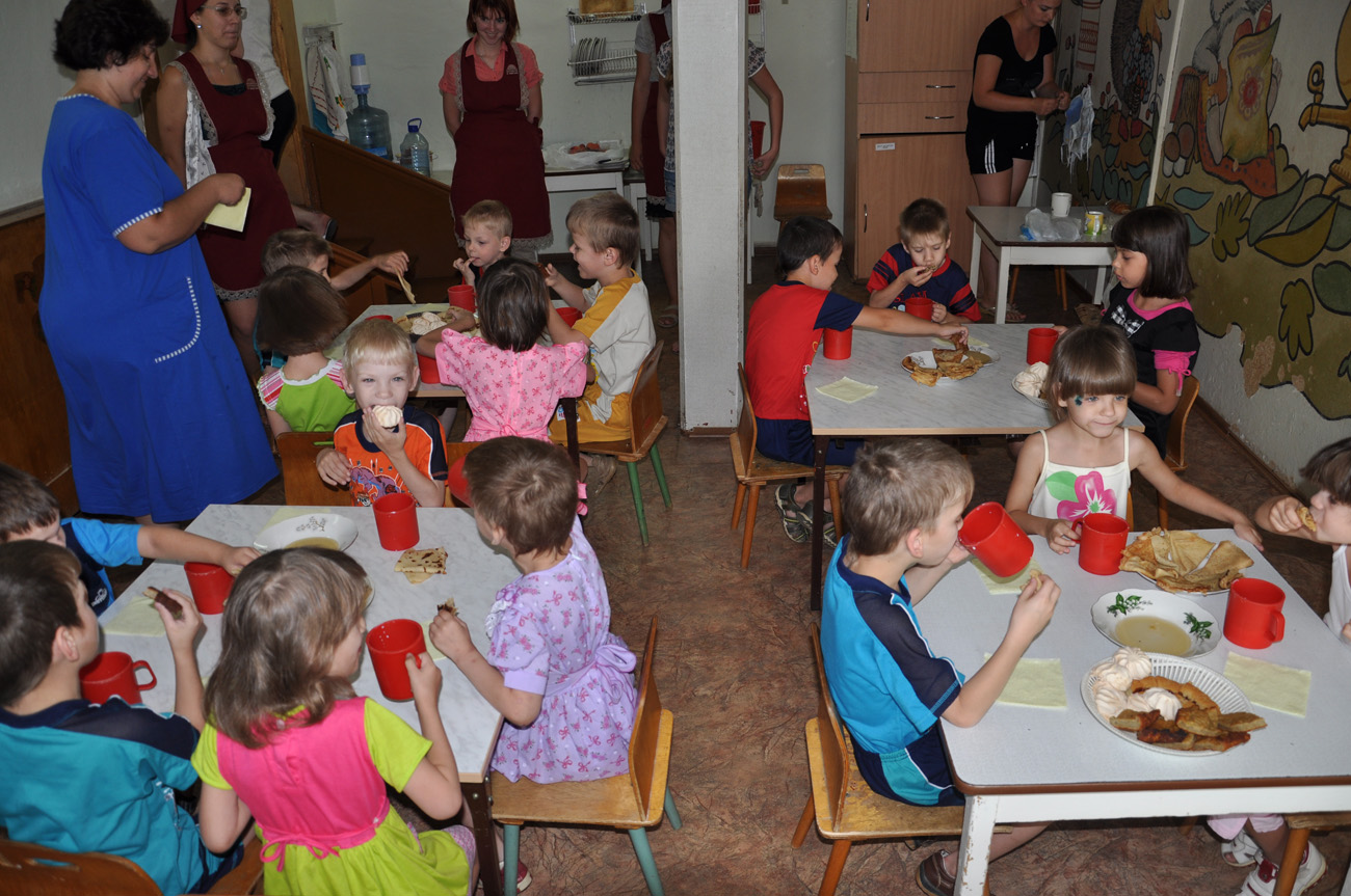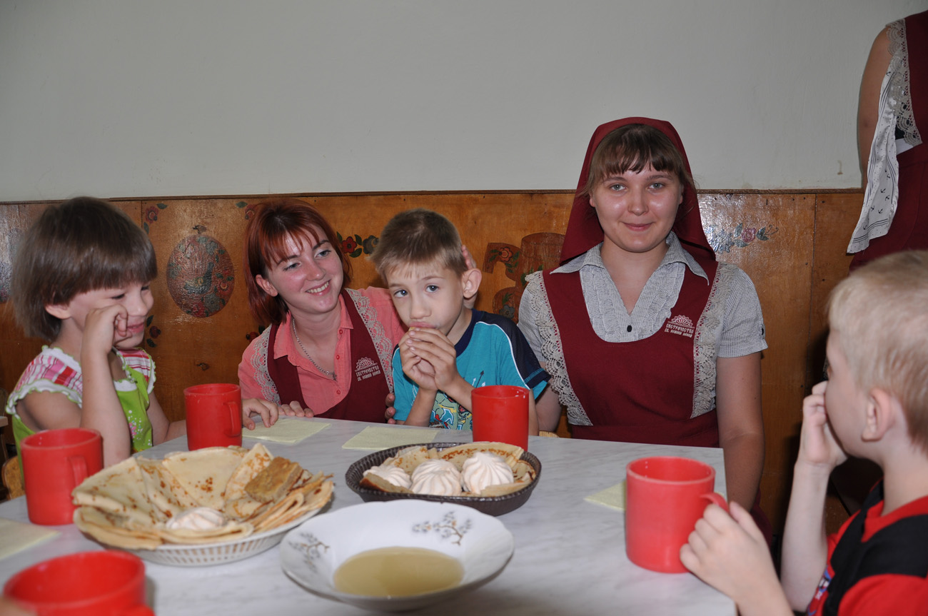 3 августа 2012 года по благословению настоятеля прихода святого Георгия Победоносца протоиерея Валерия Волощука сестричество прихода посетило окормляемый коррекционный детский дом "Аревик" с. Чалтырь. Сестры в этот раз решили порадовать детей домашней выпечкой и провести время за совместным чаепитием. После обеденного сна в каждой группе ребятишек ждали вкусные блинчики, пироги и горячий чай. Продолжилось общение на прогулке. Каждую неделю сеcтры приезжают в "Аревик" для того, чтобы провести несколько часов вместе с детшками и подарить им тепло и нежность.
