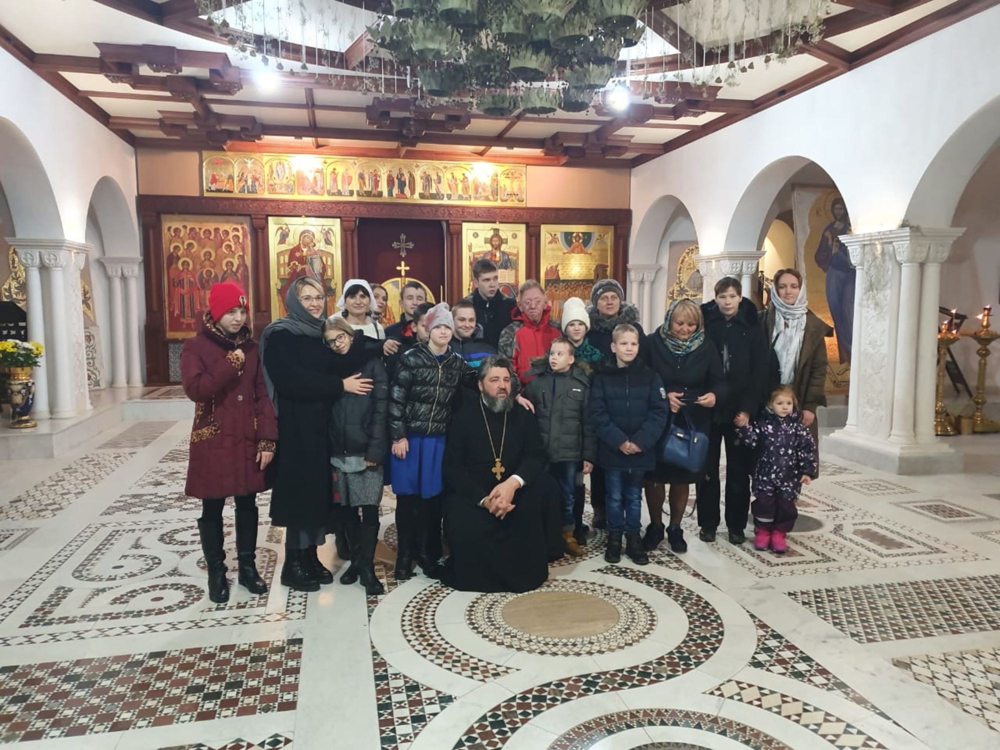 1 декабря 2019 года наш Приход посетили воспитанники Азовского детского дома-интерната для умственно отсталых детей совместно с педагогами и директором Татьяной Левченко, а также руководителем Ростовского филиала Фонда «Я ЕСТЬ» Татьяной Степановой, координатором социальной деятельности отдела по церковной благотворительности Маргаритой Чемышевой. Была проведена экскурсия, в ходе которой дети узнали о творческих направлениях нашего прихода, об убранстве храмов Иоанна Воина и 40-ка мучеников Севастийских, с ними поделились историей созидания нашего прихода и житиями его небесных покровителей. В иконописной мастерской дети и преподаватели узнали подробности и этапы написания иконы: от изготовления красок до написания ликов. Старшая сестра Храма Иоанна Воина Терехова Ольга показала мастер-класс колокольного звона, а по окончании экскурсии было организовано чаепитие.