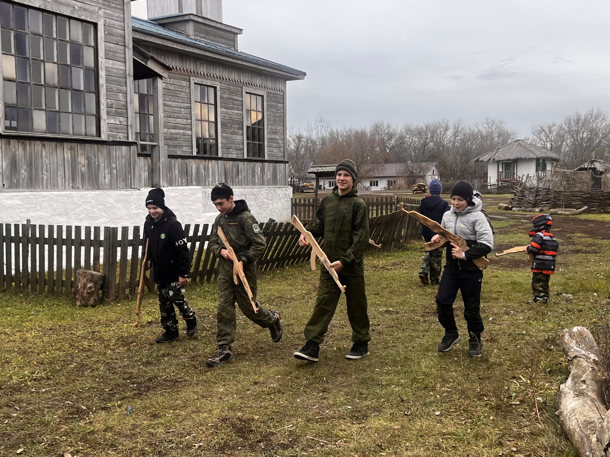 На живописной территории этно-комплекса для кадет инструкторами-наставниками патриотического центра были организованы учебные точки по военно-тактической подготовке, метанию макетов гранат на точность и дальность. Кадеты отрабатывали начальные навыки штурма и обороны различных гражданских объектов, учились обращаться с индивидуальными средствами связи – рациями, фланкировке казачьим холодным оружием – шашкой! Погода в этот день, на удивление, способствовала плодотворному обучению!