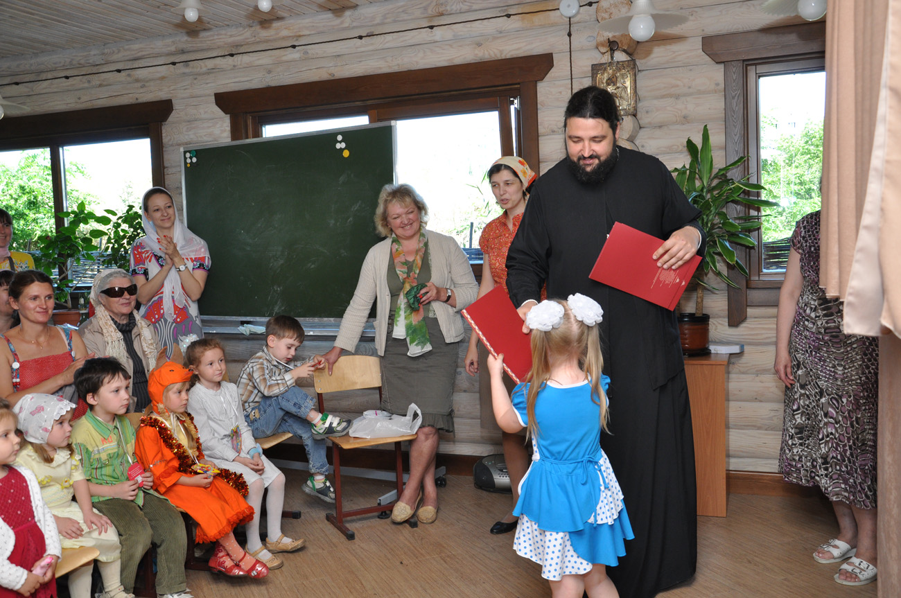 3 июня 2012 года в день Троицы, по благословению настоятеля прихода Святого Георгия Победоносца, в просветительско-развивающем центре для дошколят «Родничок» прошел выпускной утренник на котором собрались педагоги: руководитель Гончарова Елена Николаевна - педагог-психолог высшей категории; Шабеко Валентина Антоновна – педагог дополнительного образования высшей категории; Разуваева Лариса Андреевна – учитель английского языка первой категории; все учащиеся центра, а так же их родители. Отец Валерий выступил перед собравшимися с напутственной речью, поблагодарил педагогов и родителей за их труд, а детей за старание и успехи в учебе. Продолжился утренник праздничным концертом, в котором ребята показали свои таланты: танцевали, пели, читали стихи, показывали сценку на английском языке и даже показали кукольный спектакль. А завершился утренник праздничным чаепитием.