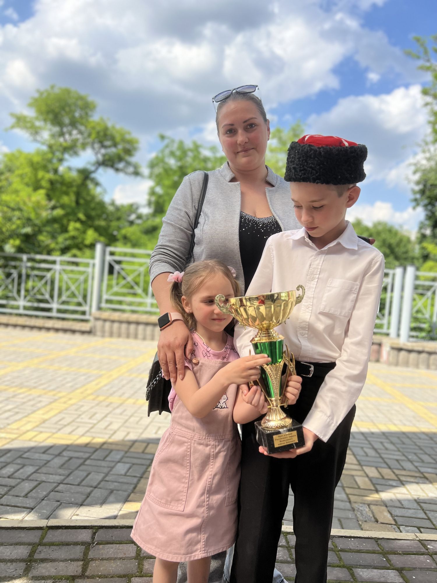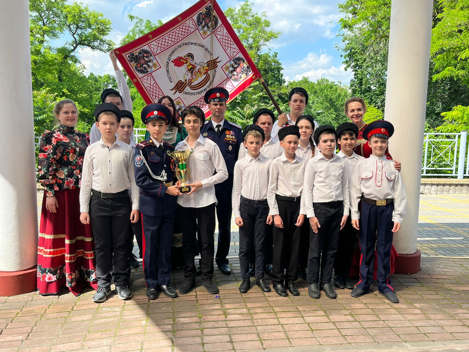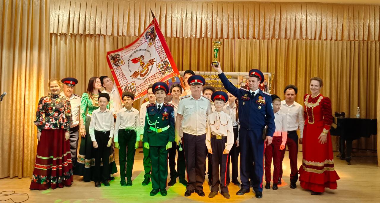 В смотре-фестивале принял участи наш казачий семейный ансамбль «Тихий Дон», состоящий из родителей и воспитанников Духовно-Патриотического центра приходской воскресной школы. Высокое жюри по достоинству оценило талант и выступление нашего коллектива. Казачий семейный ансамбль «Тихий Дон» был награжден главным призом фестиваля Большим кубком Атамана Ростовского округа! Награду нашему коллективу вручил сам Атаман окружного казачьего общества Ростовкий округ Симоненко Виктор Анатольевич.