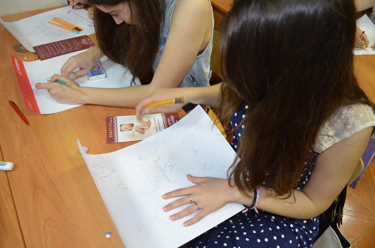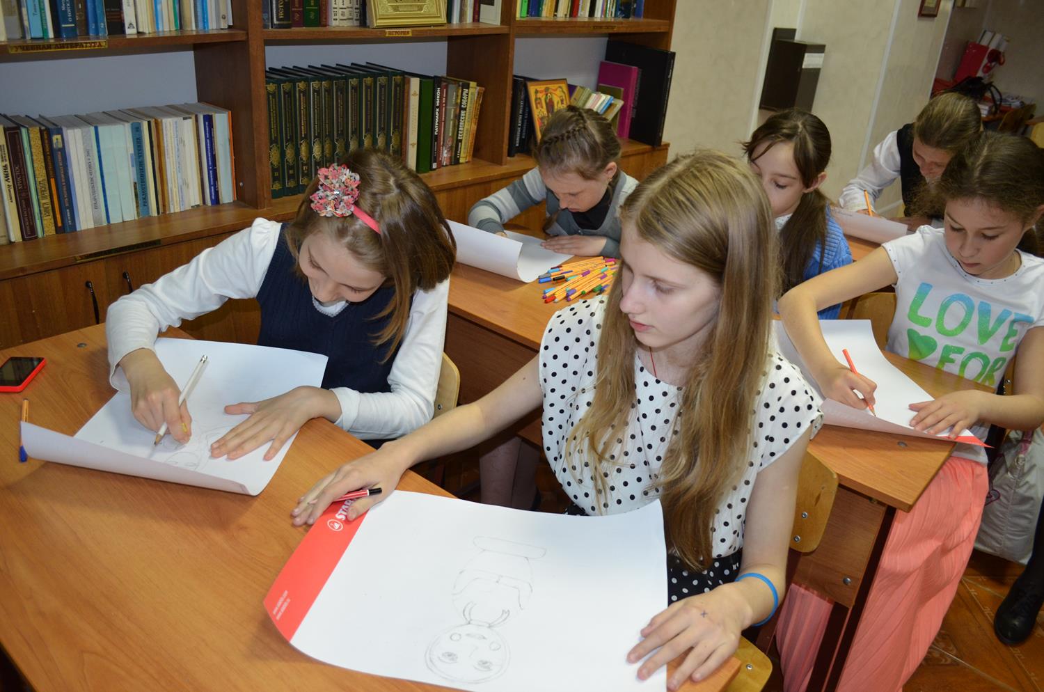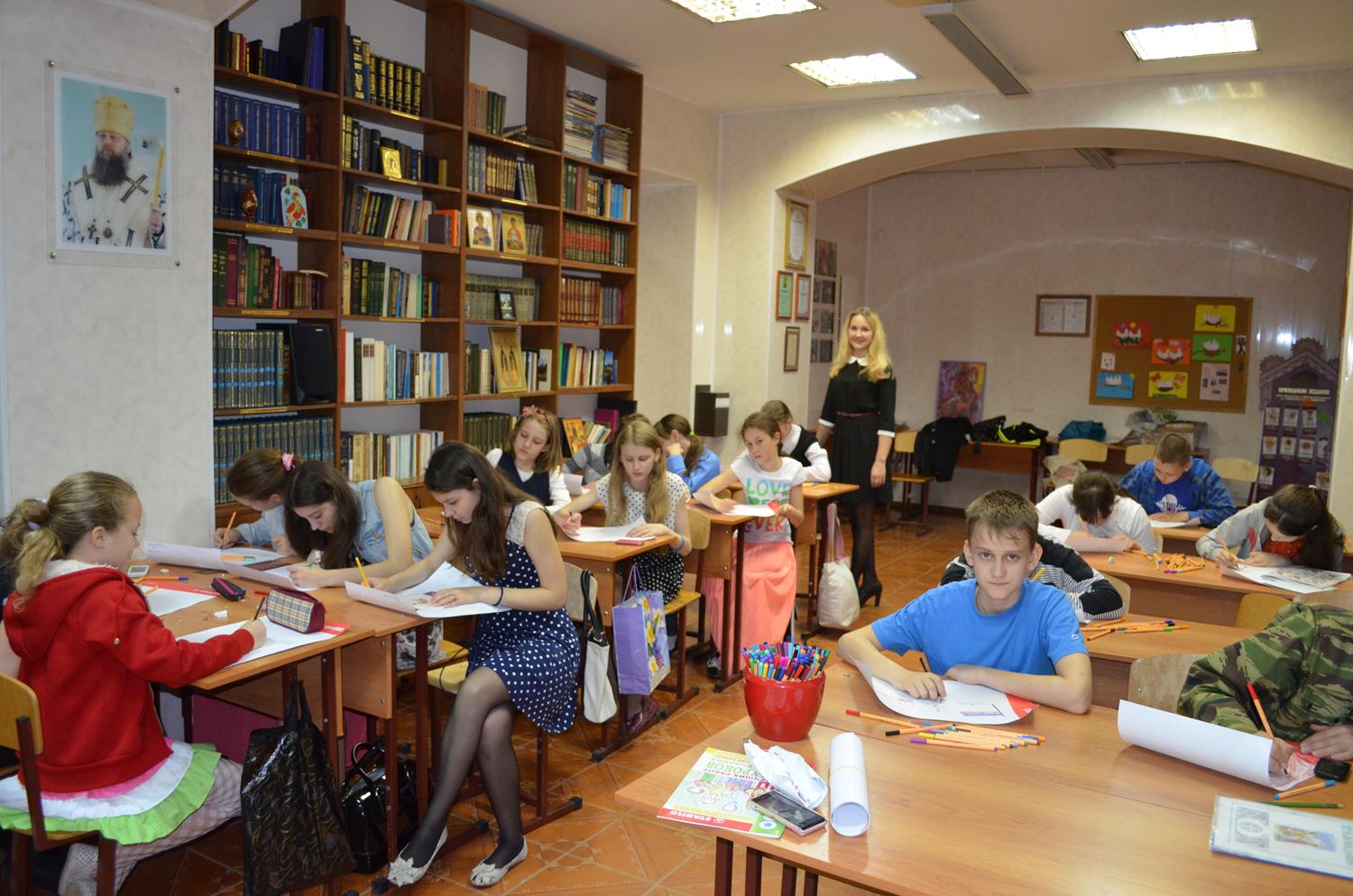 Урок прошел в помещении воскресной школы храма. Занятие провела преподаватель из Центра по работе с одарёнными детьми "Дар" от Дома творчества детей и молодёжи г. Ростова-на-Дону Глущенко Ксения Викторовна. Конкурс проходит при поддержке СМИ-СТАР.