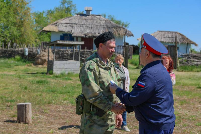 Казачий полковник Г.В. Момот вручил начальнику штаба центра сотнику С.В. Руденко медаль «За особые заслуги» за вклад в возрождение казачества и патриотическое воспитание молодежи. Все участники получили памятные шевроны святого Георгия Победоносца.