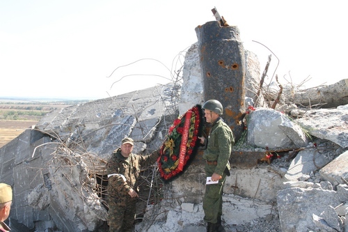 Несмотря на то, что вокруг ещё идут ожесточённые бои и сама высота ещё под обстрелом, в том числе и баллистическими ракетами «Точка У», патриоты Донской земли и Донбасса нашли в себе мужество и провели торжественное мероприятие, почтив память погибших молитвой и торжественным салютом из всех видов оружия.