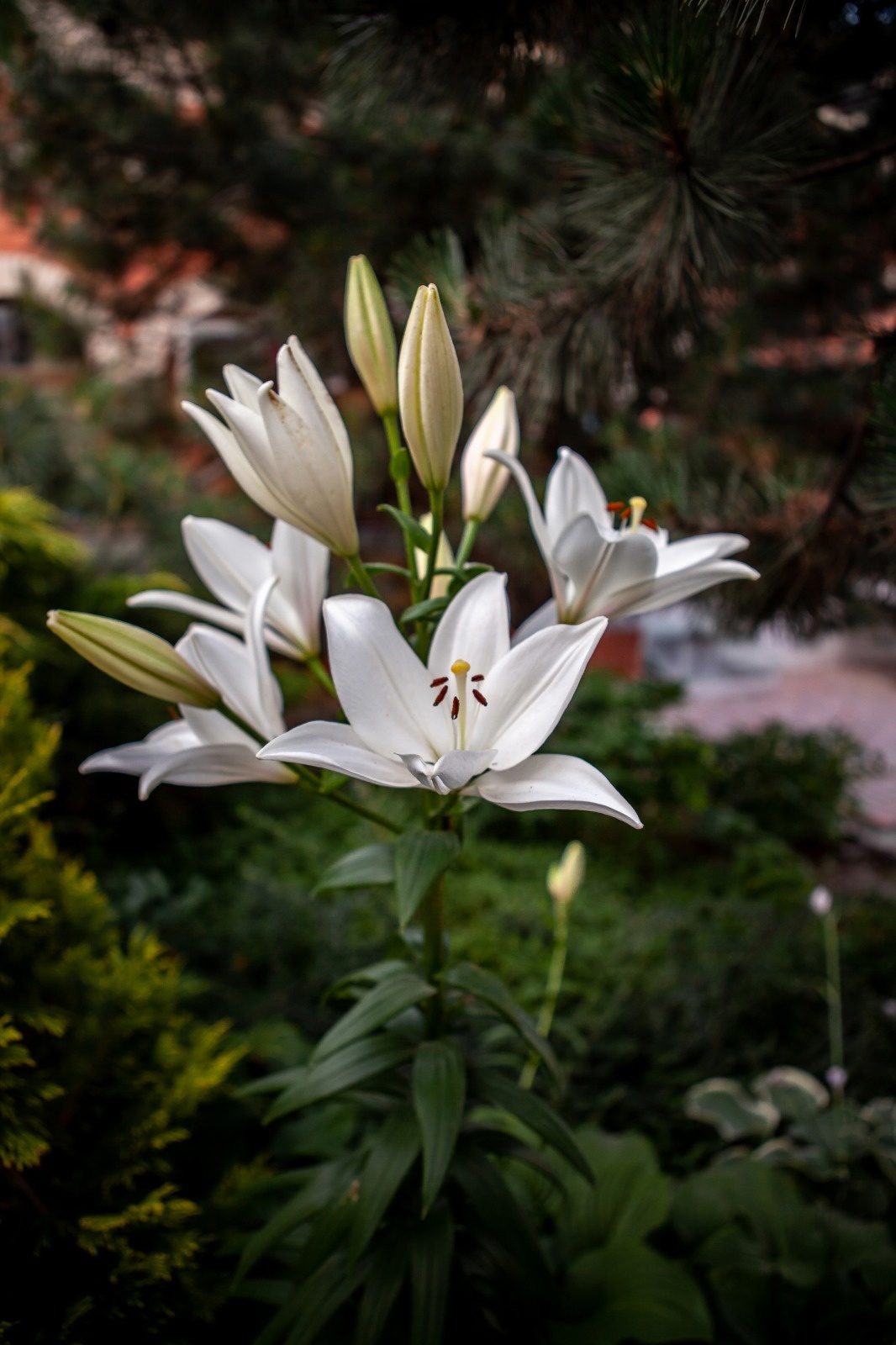 - Белоснежка лилия "Кандидум гибрид". Очень красивые колосовидные цветы, направленные вверх.