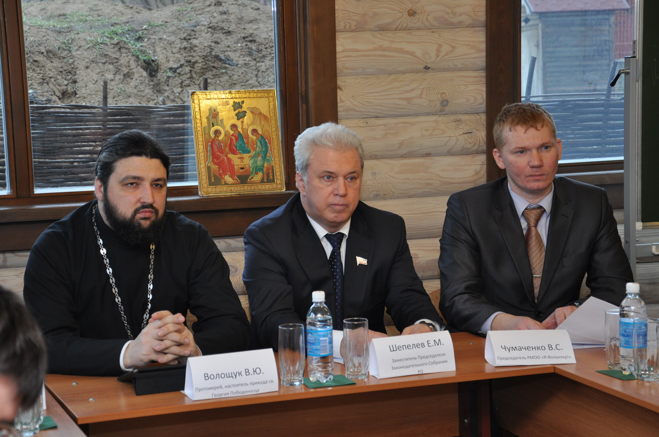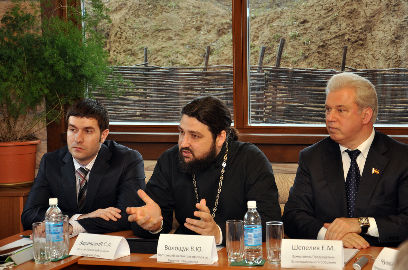 30 марта 2012г. руководитель отдела по взаимоотношениям церкви и общества Ростовской-на-Дону епархии протоиерей Валерий Волощук принял участие в работе круглого стола с представителями молодежных общественных организаций на тему " Мнение молодежи об инциденте произошедшем 21 февраля в Храме Христа Спасителя с участием панк-группы "Pussy Riot".