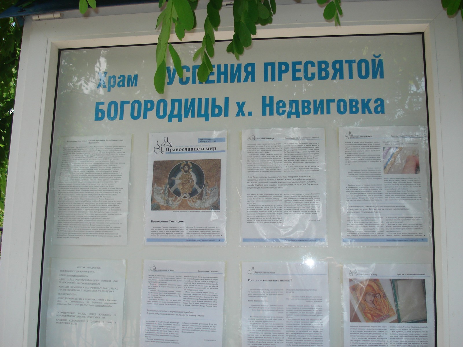 30 мая 2014 года по благословению благочинного Западного округа протоиерея Иоанна Осяка состоялась паломническая поездка прихожан Западного благочиния по святым местам Ростовской области. Паломники посетили храм Успения Божией Матери хутора Недвиговка, храм Всех Святых села Синявское и монастырское подворье Свято-Иверского женского монастыря, расположенное в селе Петровка.