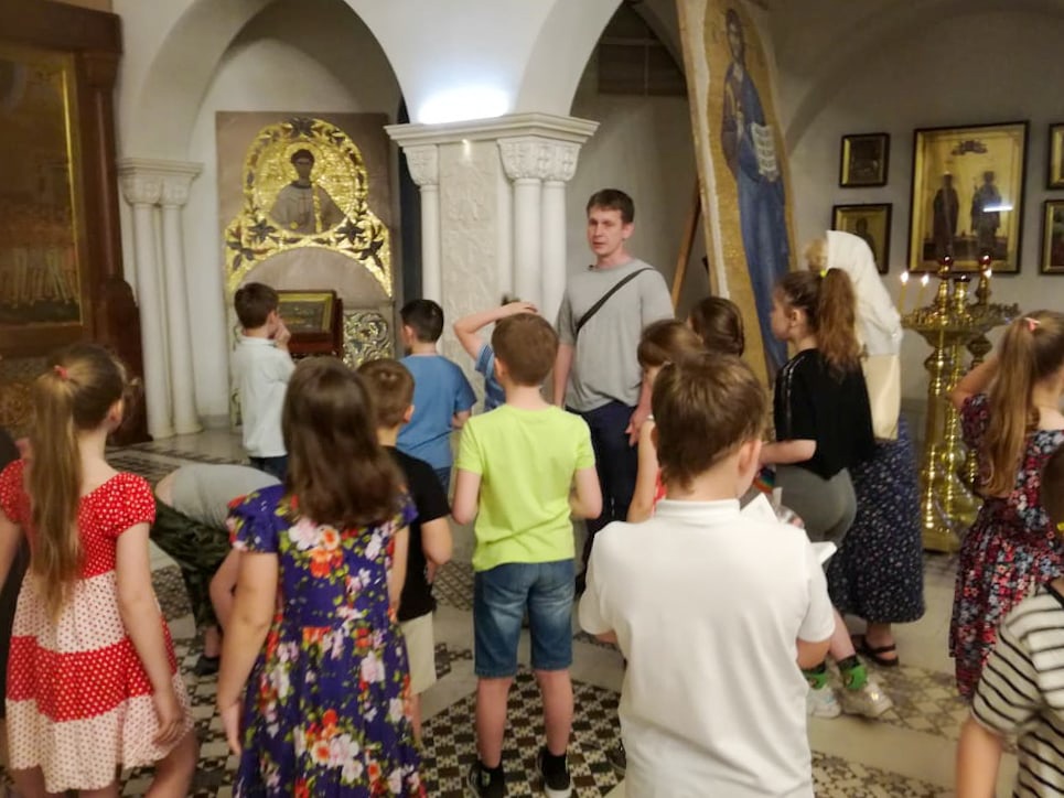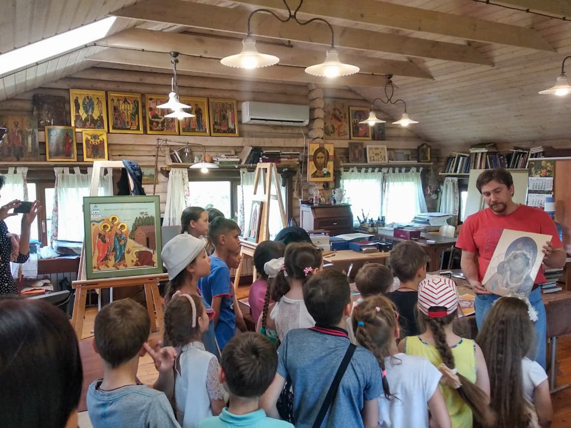 Для детей из младших групп и их родителей старшая сестра Ольга Терехова и руководитель школы церковных звонарей Ольга Шевчук провели экскурсии по храмам и мастерским прихода. Дмитрий Александрович Малеев, преподаватель Ветхого Завета, познакомил ребят с храмовой иконой Сорока мучеников Севастийских и их святым жизнеописанием.