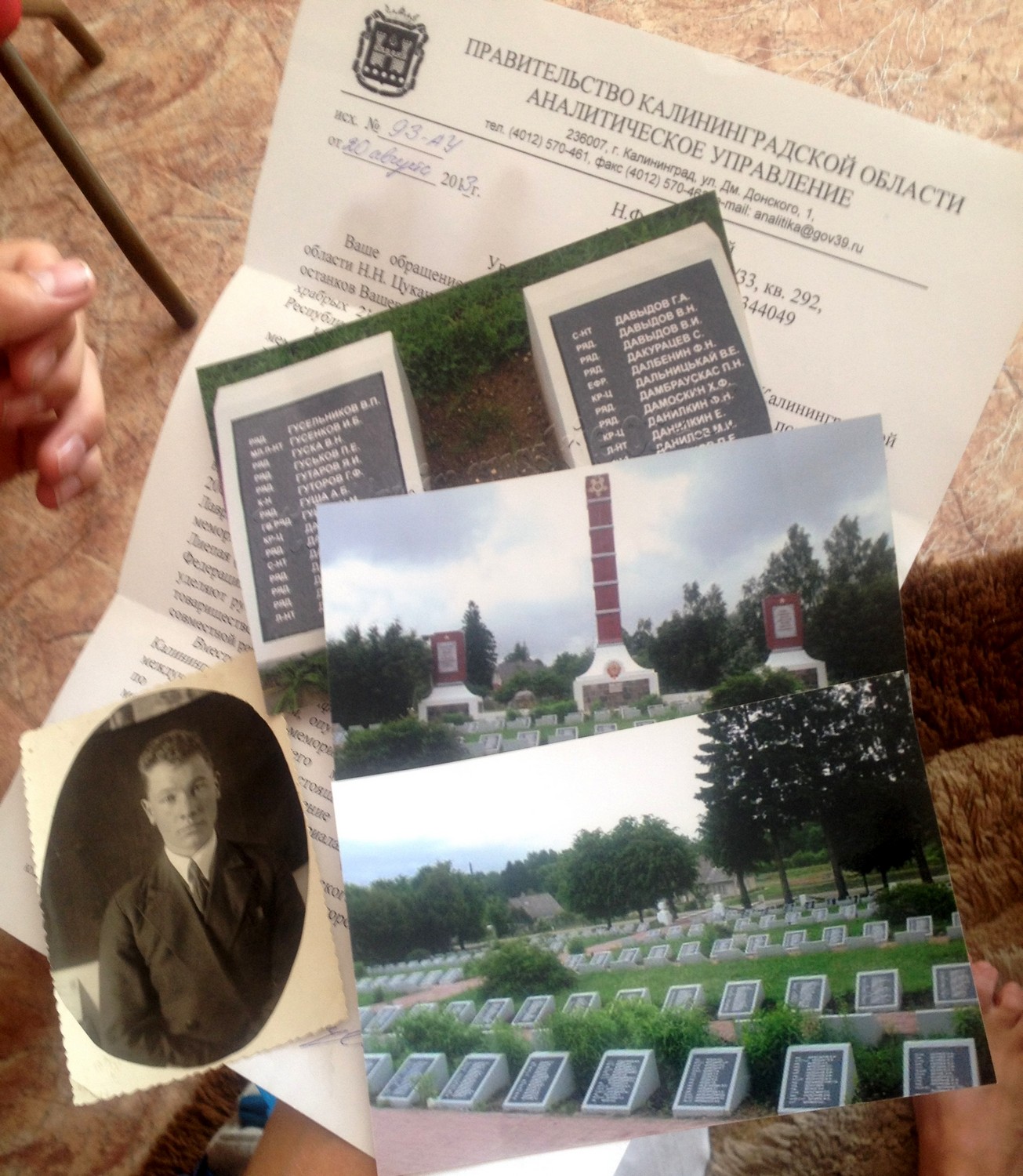 Нина Федоровна показала письмо - она разыскивала могилу своего брата очень долго. Он прошел всю войну и погиб всего лишь за 2 месяца до конца войны... И вот недавно пришло письмо из Калининграда - о мемориале, который чтит память этого солдата, наряду с тысячами других...