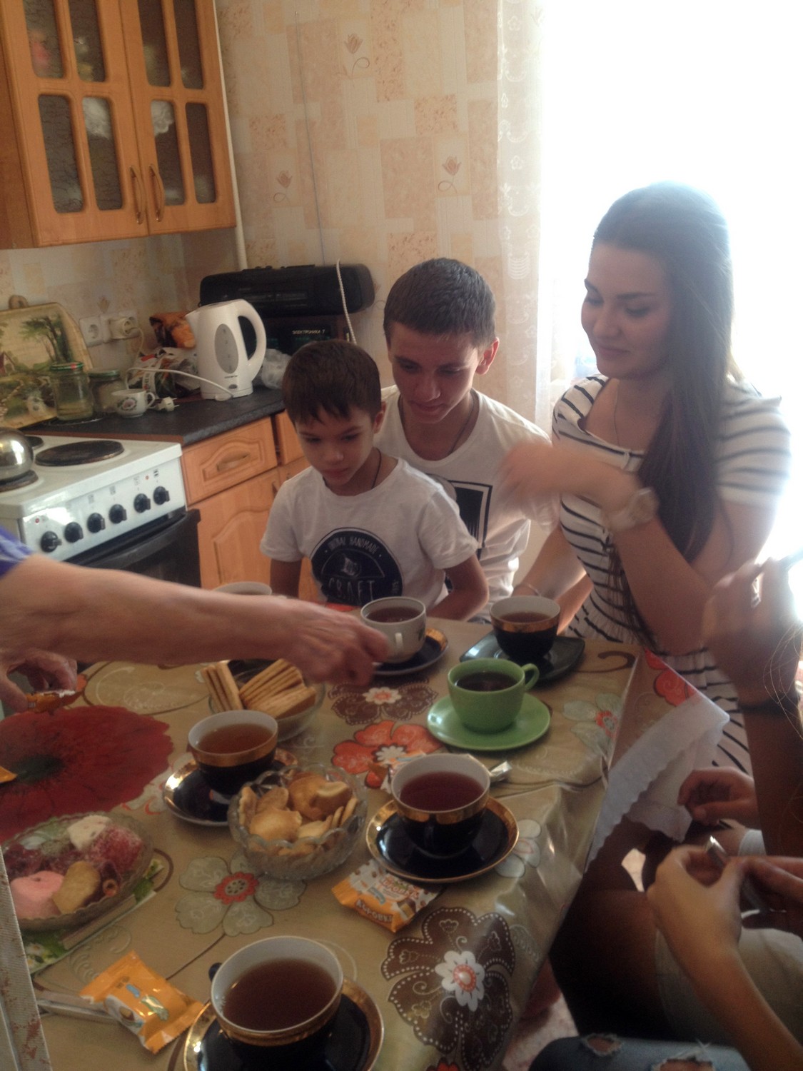 Мы с ребятами из молодежного клуба решили взять под маленький "патронаж" нескольких ветеранов Великой Отечественной Войны, быть им хоть чем-то небольшим, но полезными. 31 августа 2014 года мы ходили знакомиться с двумя женщинами-ветеранами - Ниной Федоровной и Евдокией Трофимовной. Встреча была теплой, светлой и очень человечной. Нас встретили вкусным домашним печеньем, подарками, по-настоящему добрыми улыбками. Мы говорили про жизнь, смотрели старые фотографии.