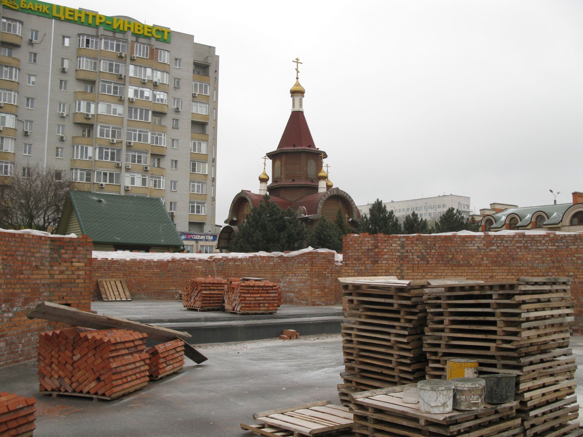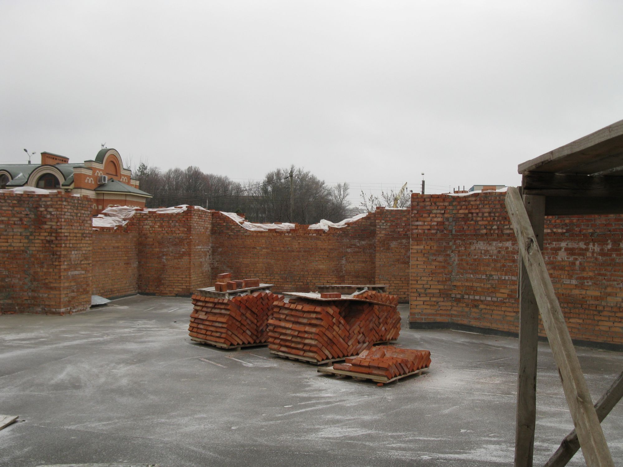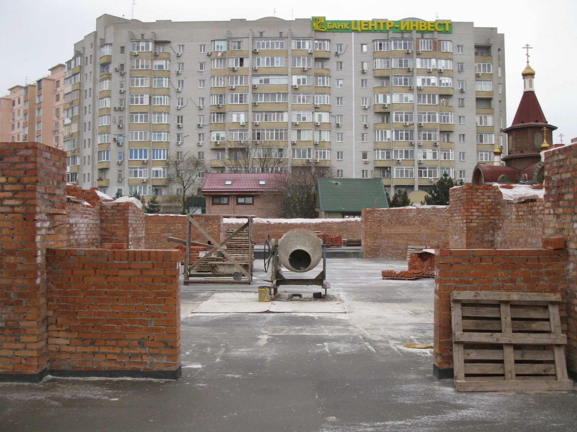 В этот сезон хоть и немного, 2 каменщика, у нас постоянно работали наверху. Проведены работы по внутренним интерьерам. Закончилась уже все штукатурные работы внутри храма 40 Севастийских мучеников. Осталась шпаклевка. Начаты работы по изготовлению потолка. У нас будут кесонные деревянные потолки, в алтаре уже висят рамы.