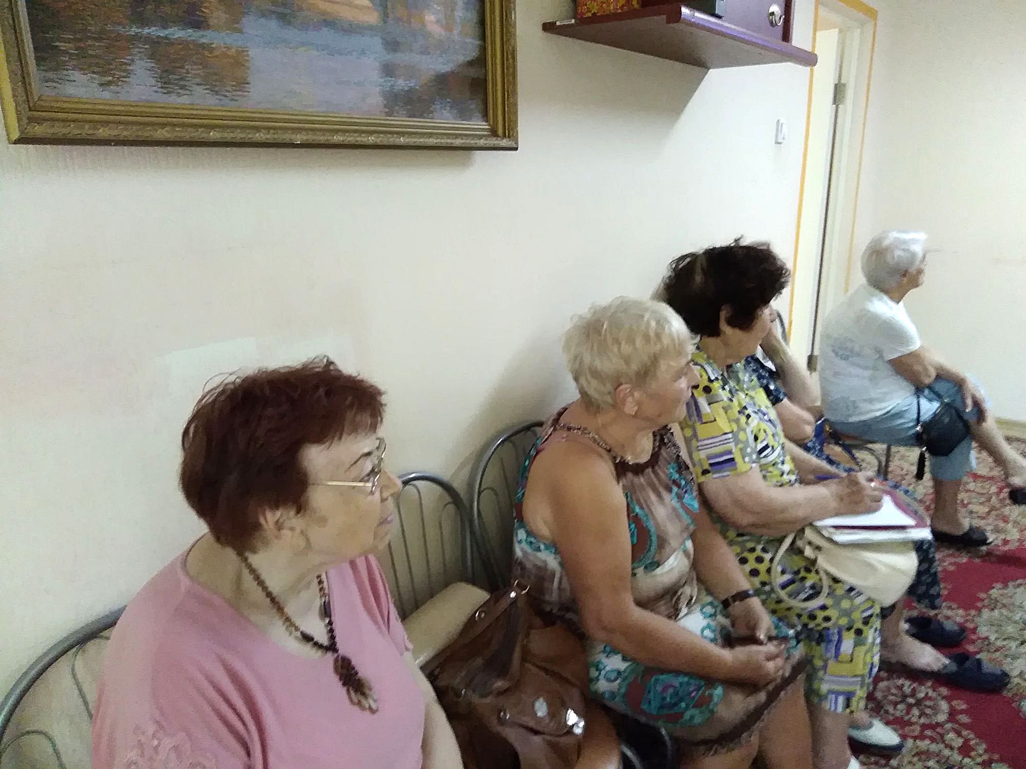 31 июля 2019 года сестры милосердия храма Иоанна Воина и наш замечательный прихожанин Владимир Георгиевич посетили Центр социального обслуживания населения Советского района. Темой нашей беседы в этот раз была Паломническая поездка нашей воскресной школы на Соловецкие острова. Владимир Георгиевич преподаватель истории 117 гимназии очень интересно рассказал о происхождении островов, о том как в пустынном месте зародился монастырь, о том как в годы революции на Соловках был создан страшный лагерь. Удивительно красочно было рассказано о нашем путешествии на остров Анзер. С большим интересом слушали пенсионеры об этой поездке. В конце беседы старшая сестра Ольга Терехова подарила каждому присутствующему открытку с изображением Соловецкого монастыря.