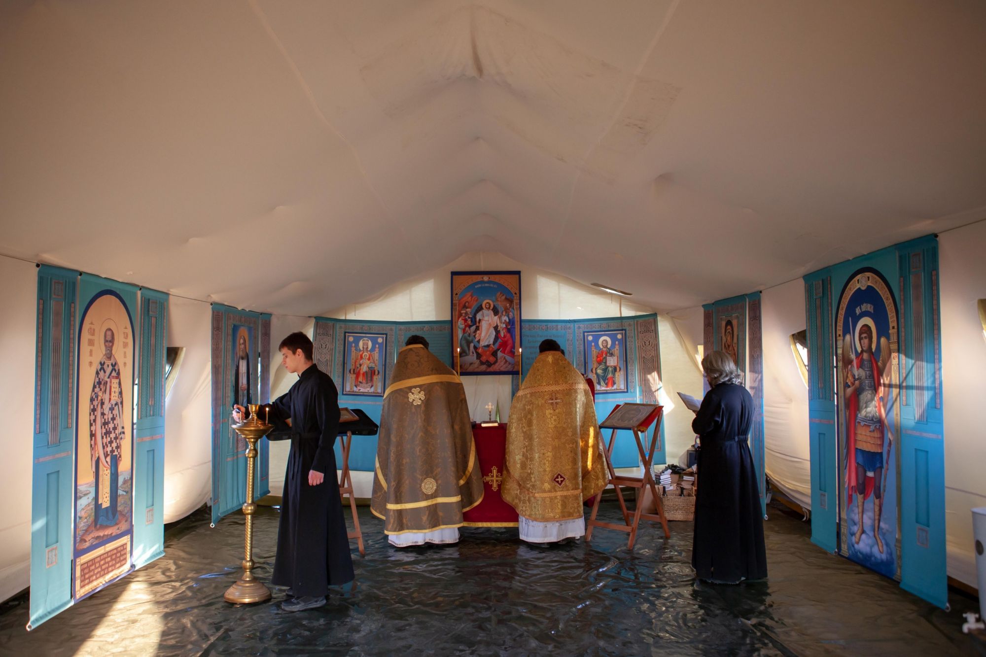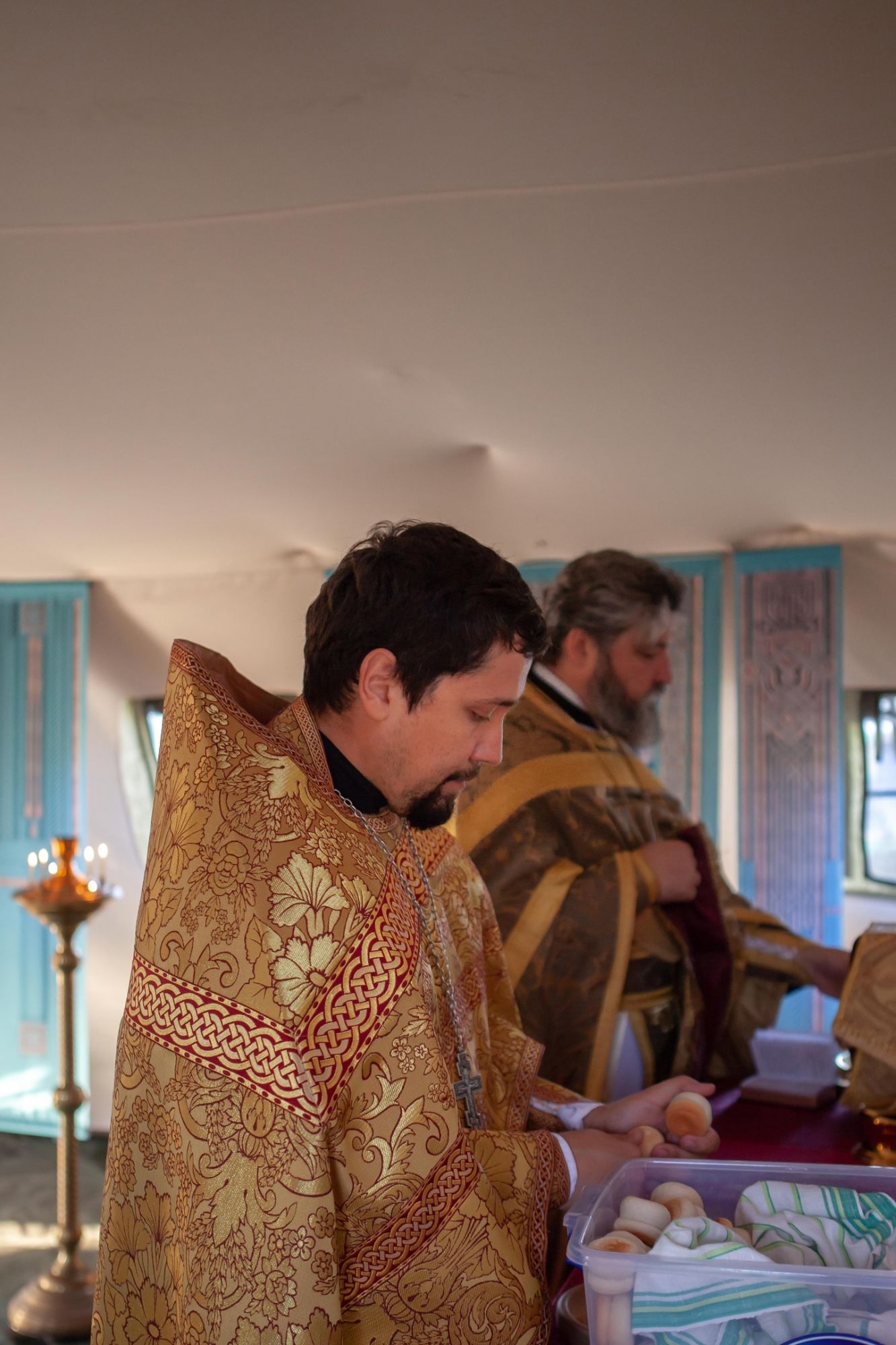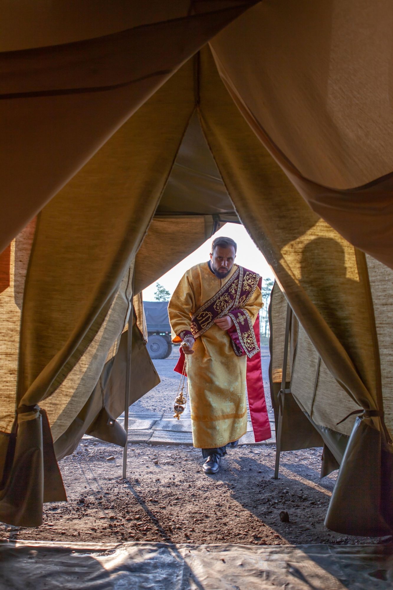 Настоятель Главного храма Южного военного округа протоиерей Валерий Волощук совершил Божественную литургию в Михайло-Архангельском военно-полевом храме на полигоне. Отцу Валерию сослужили помощник начальника отделения по работе с верующими военнослужащими военно-политического управления Южного военного округа, настоятель Преображенского храма с. Займо-Обрыв Азовского района иерей Иоанн Молчанов и протодиакон Александр Смагло.