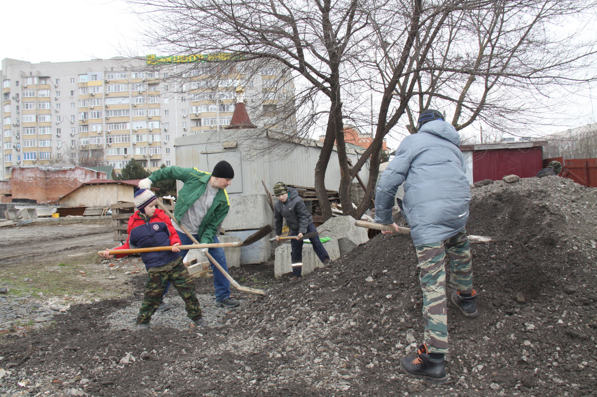 31 марта 2018 года на территории Ростовского духовно-патриотического комплекса Святого Георгия Победоносца прошел субботник по благоустройству территории и подготовке полосы препятствий к проведению занятий по начальной военной подготовке к службе в Российской армии. В субботнике приняли участие инструкторы-наставники, учащиеся воскресной школы, занимающиеся по программе «Уроки мужества», и их родители.