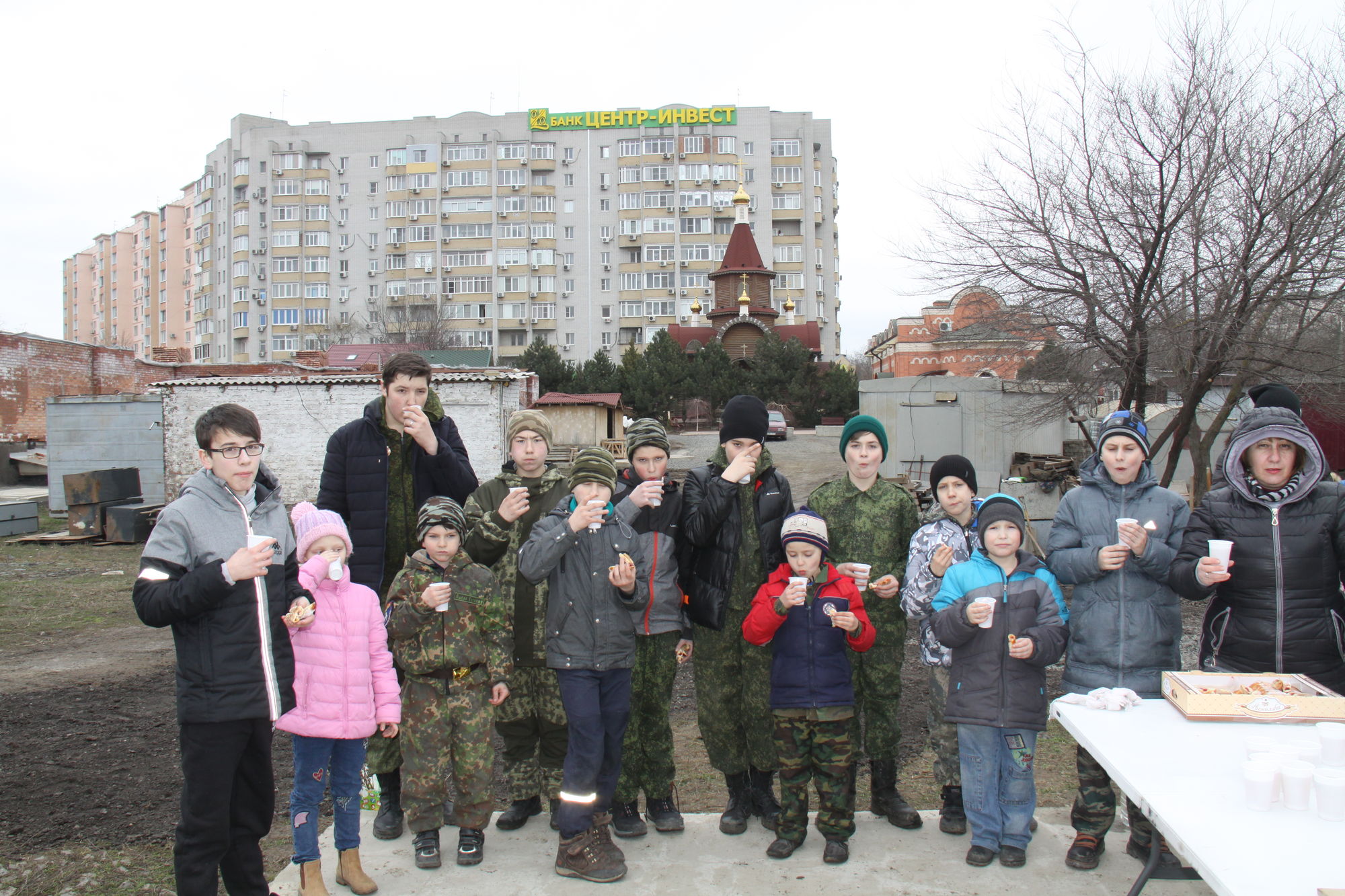 После активного трудового дня для детей и взрослых было организовано чаепитие. Вновь поступившим воспитанникам были вручены нарукавные шевроны о принадлежности к юнармейской детско-юношеской развед-группе и Всевеликому войску Донскому.