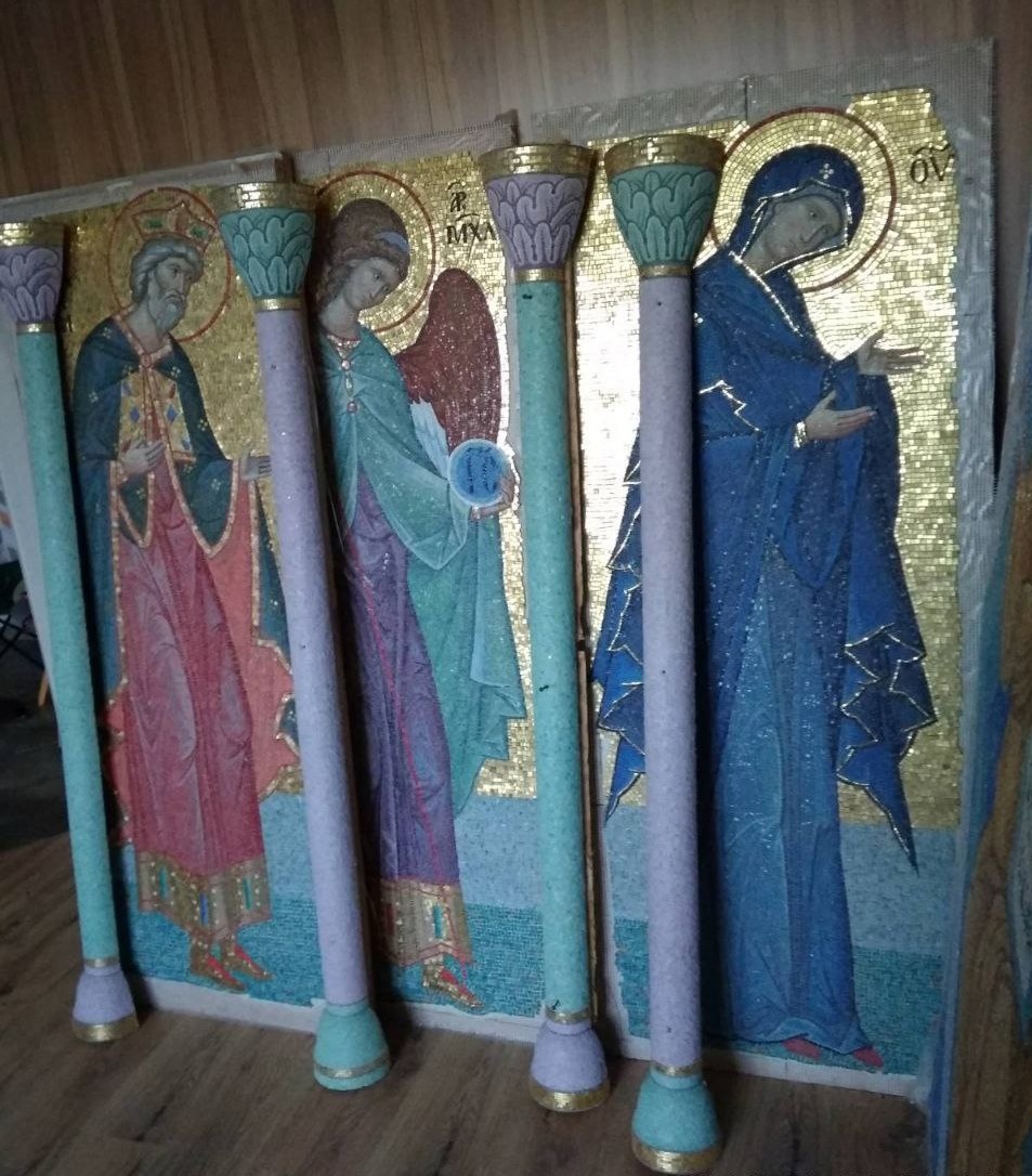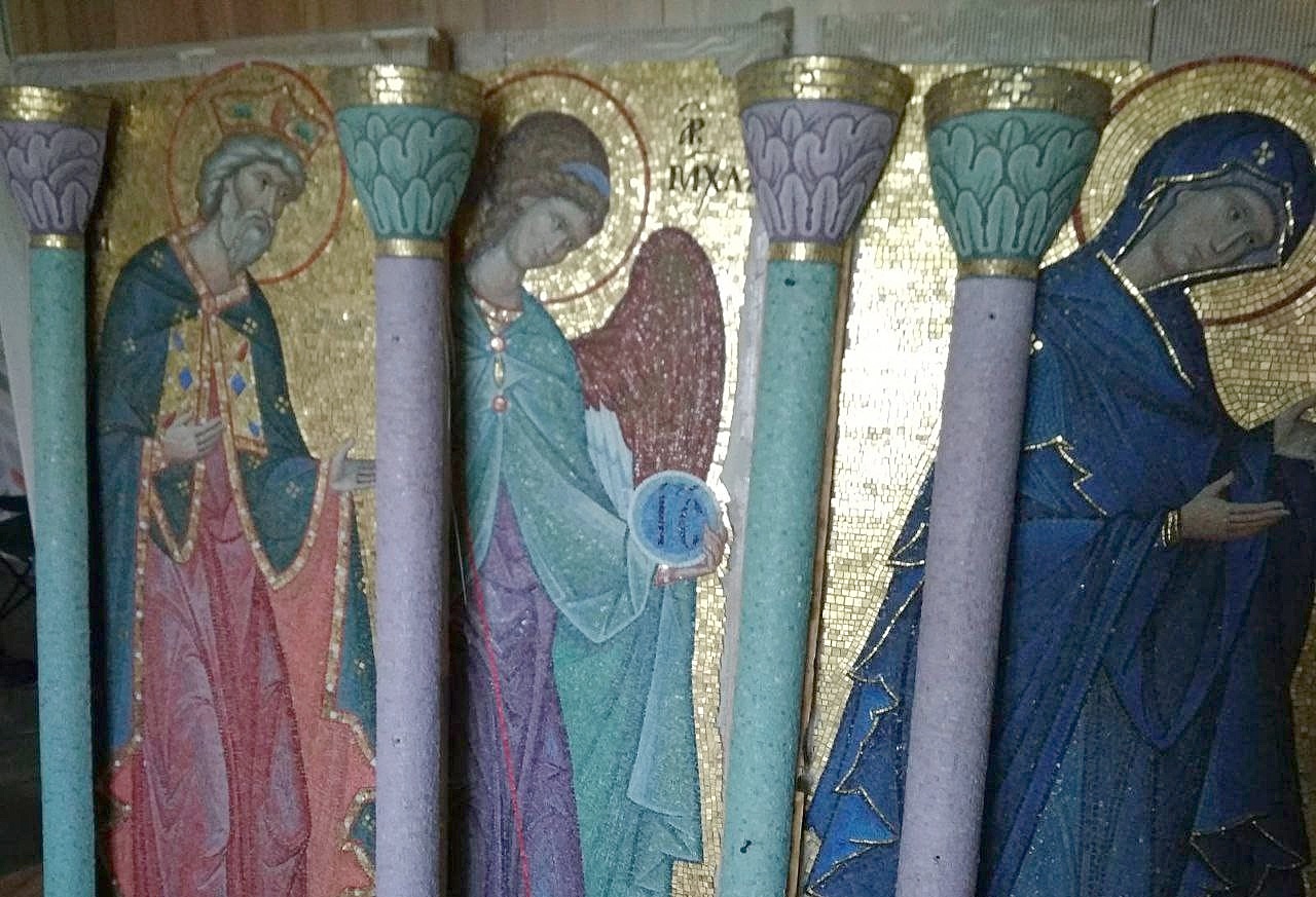 Готовы колонны второго яруса иконостаса храма святого Георгия Победоносца в технике мозаики