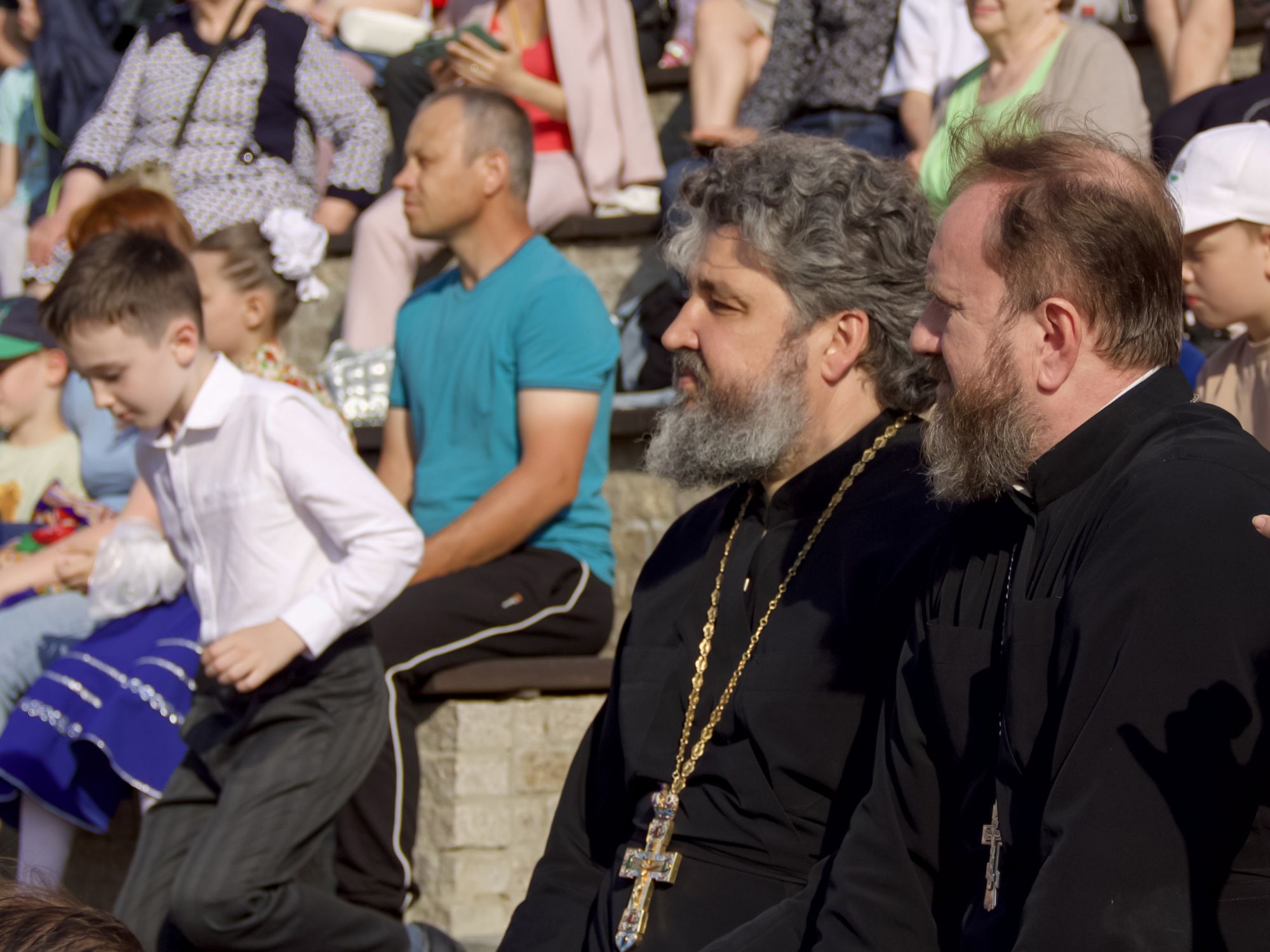 В минувшее воскресенье в амфитеатре Георгиевского сада дружно и весело отметили окончание учебного года в нашей воскресной школе. Праздник открыл настоятель прихода отец Валерий Волощук. Батюшка поздравил всех с днем Святой Троицы и поприветствовал воспитанников, педагогов, родителей и гостей.