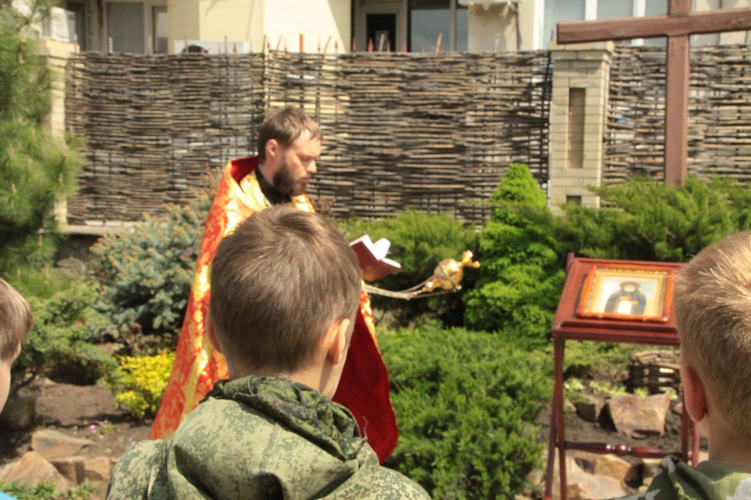 В этот же день воспитанники приходской воскресной школы приняли участие в занятиях по программе «Уроки Мужества», организованных Ростовским Духовно-Патриотическим Центром Святого Георгия Победоносца. Они активно занимались строевой подготовкой и военно-спортивным многоборьем.