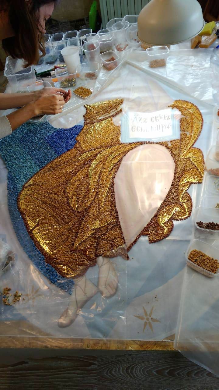 Над составлением икон трудится молодой, но опытный мозаичист из Минска Александр Ясюкайт с супругой Юлией.