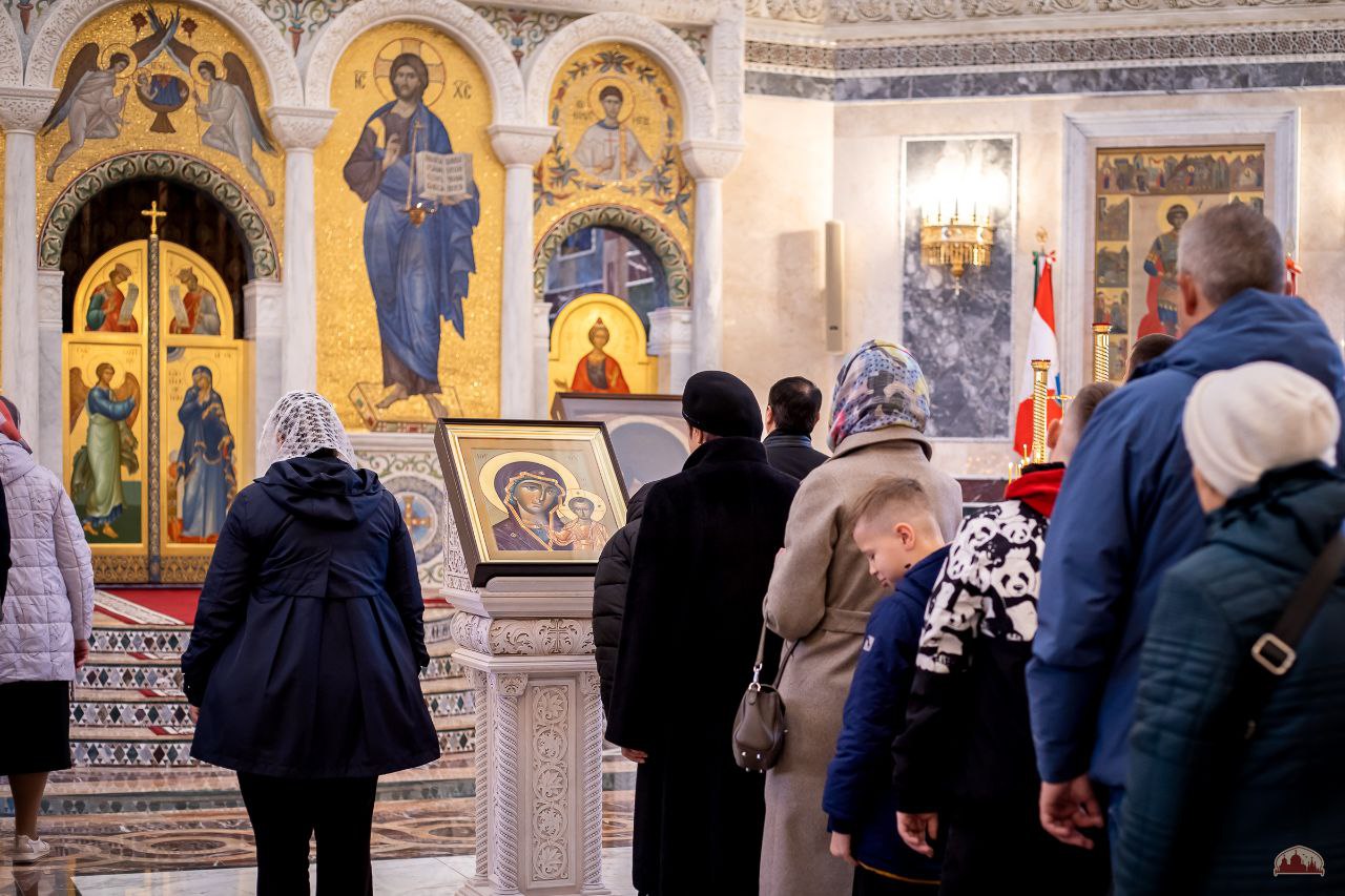 Заступница усердная, Матерь Господа Всевышнего, за всех молишь Ты Сына Твоего, Христа Бога нашего, и содействуешь спасению всех, под мощный Твой покров прибегающих. Всех нас защити, о Госпожа, Царица и Владычица, пребывающих в напастях, и скорбях, и болезнях, обремененных грехами многими, предстоящих и молящихся Тебе с умиленною душою и сокрушенным сердцем, пред пречистым Твоим образом со слезами, и имеющих твердую надежду в Тебе на избавление от всех зол. Всем полезное даруй и всех спаси, Богородица Дева, ибо Ты – Божественный покров рабам Твоим.