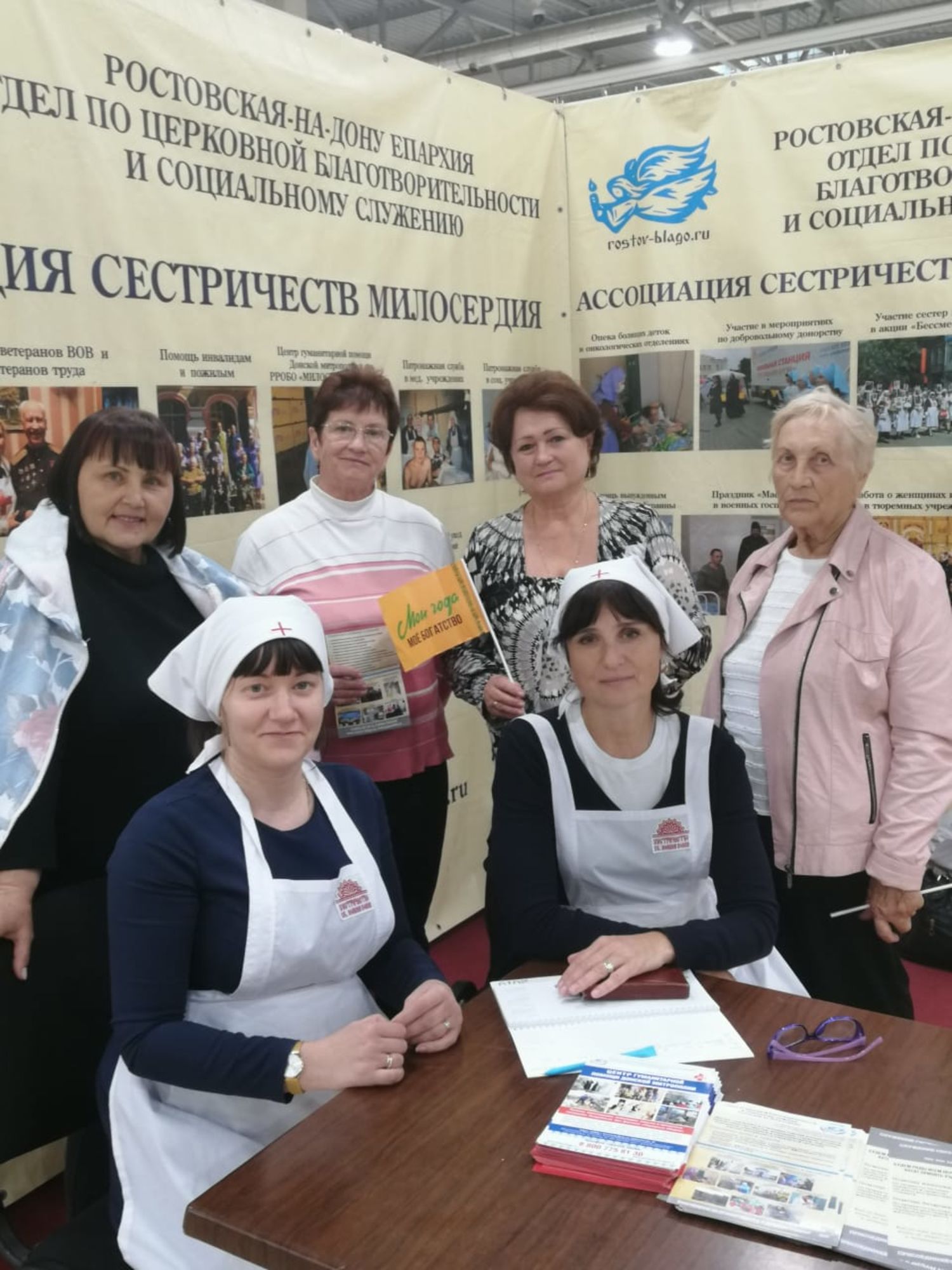 Сестры милосердия приняли участие в празднике «Старшее поколение Дона». Впервые на Дону состоялся праздник для пожилых людей, который проводился в КВЦ «ДонЭкспоцентр». На стендах была представлено социальная деятельность Ростовской-на-Дону епархии по оказанию поддержки помощи пожилым людям, служению ближним. Пожилые люди посетили образовательные лекции по финансовой грамотности, правовой защите, личной безопасности (защита от мошенников). Сестрами милосердия были розданы буклеты и листовки, рассказано о направлениях деятельности сестричества.
