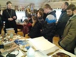 4 января 2013 года наш приход посетили преподаватели и воспитанники воскресной школы Свято-Троицкого храма г. Таганрога. Для ребят была проведена экскурсия по церкви святого Иоанна Воина, мастерским прихода и на колокольню. Они познакомились с техникой золотного шитья, узнали больше об иконописи, попробовали себя в звонарном мастерстве.