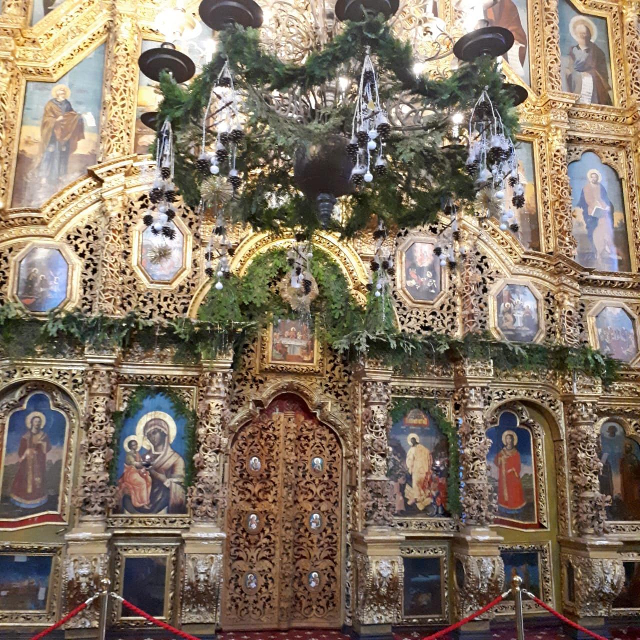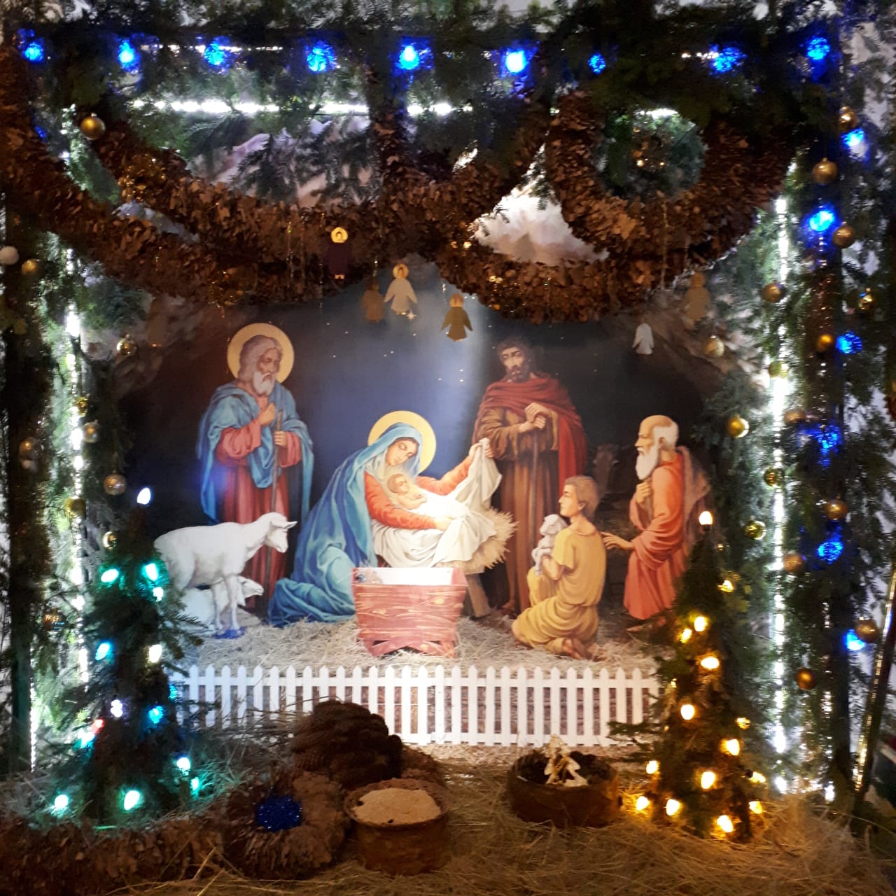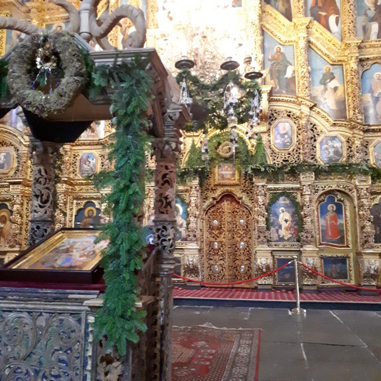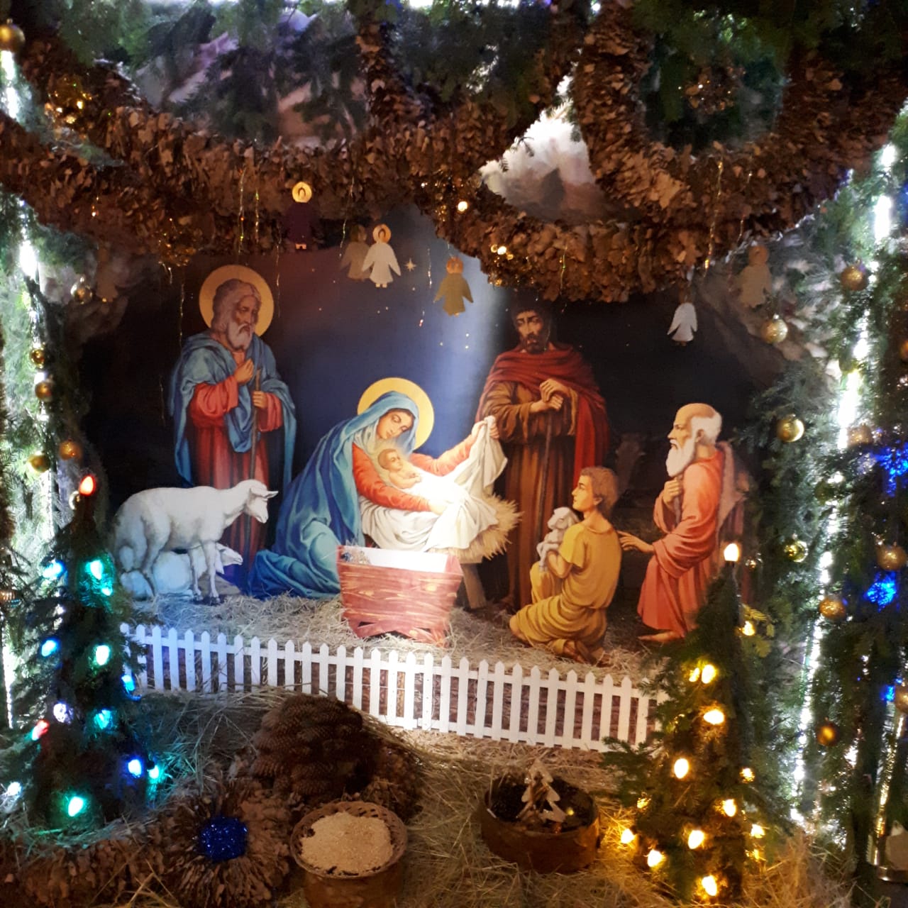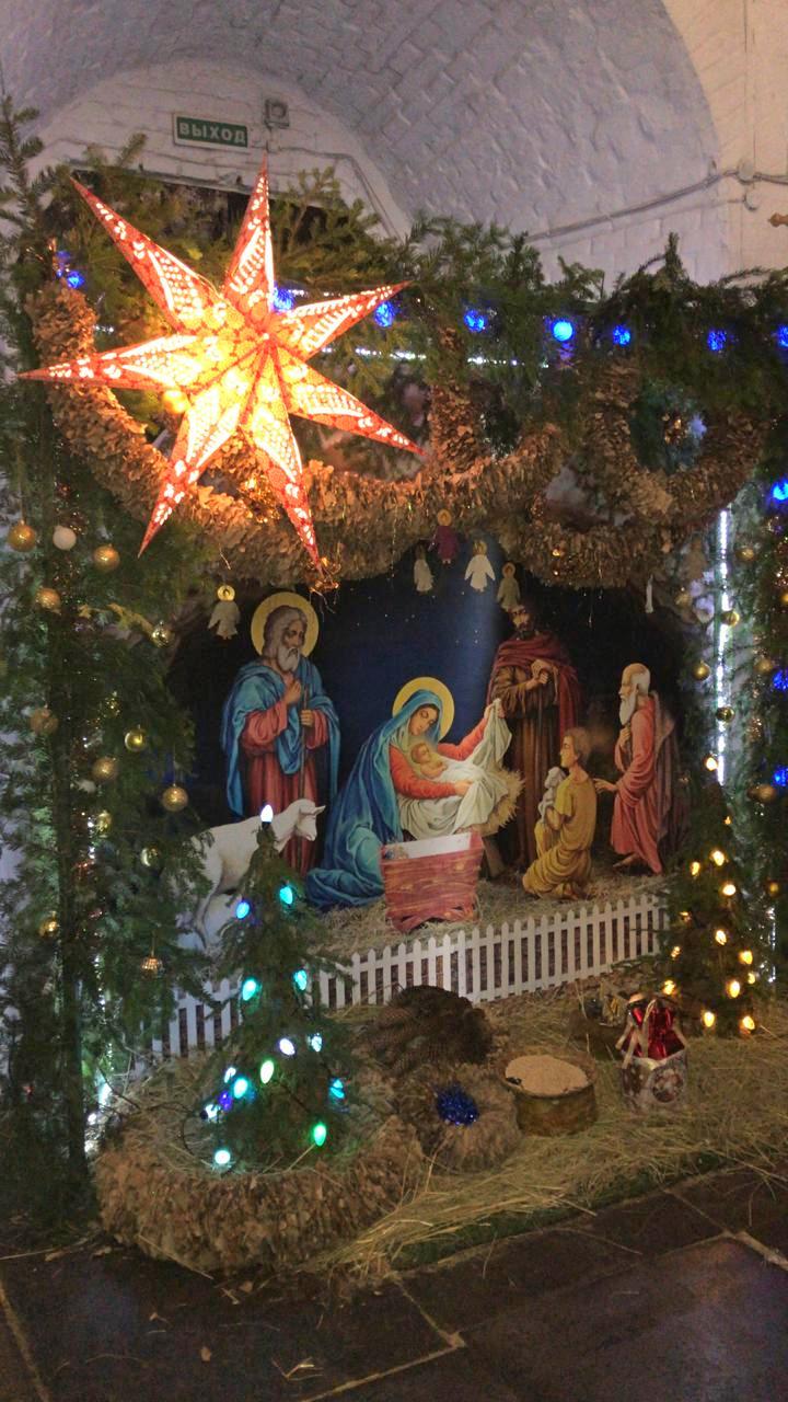 Работники флористической мастерской и наши прихожане украсили Воскресенский войсковой собор к празднику Рождества Христова. Использовались только натуральные природные материалы. В северном пределе был установлен вертеп, украшенный еловыми ветвями, гирляндами из листьев, фонариками и игрушками.