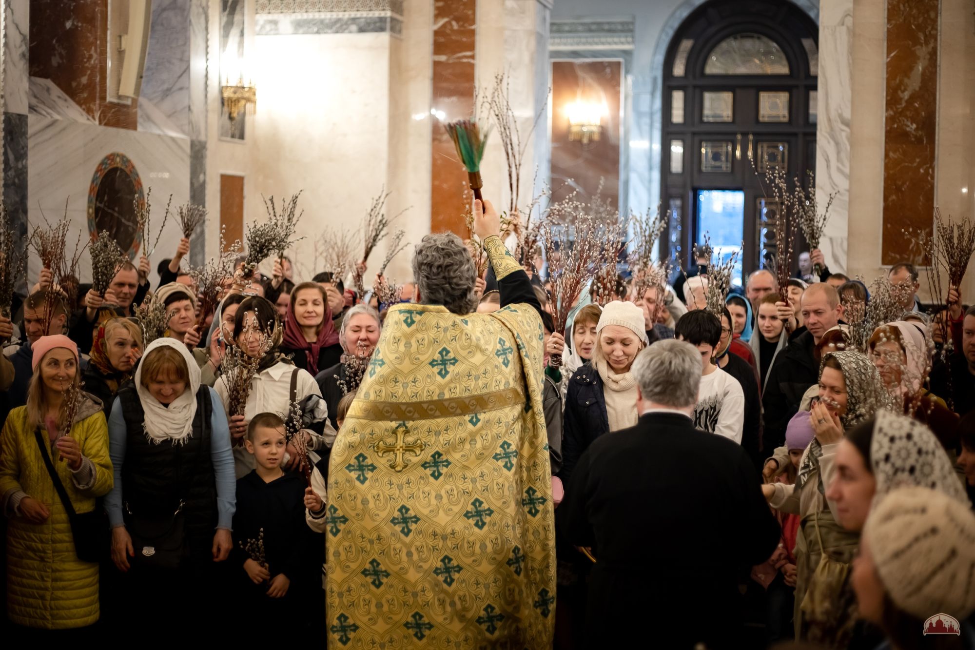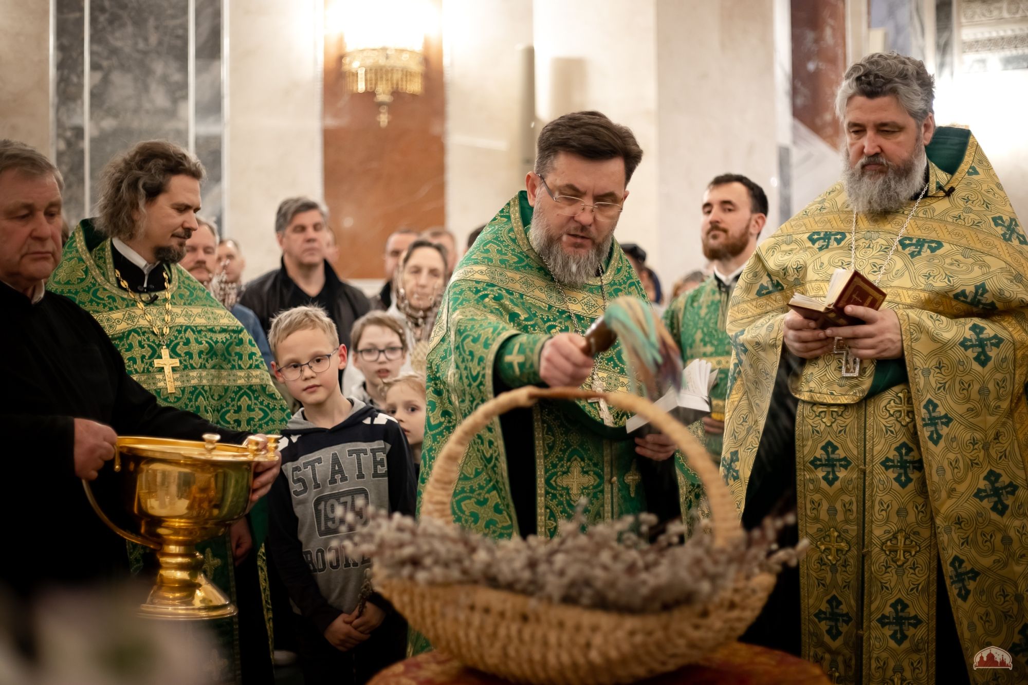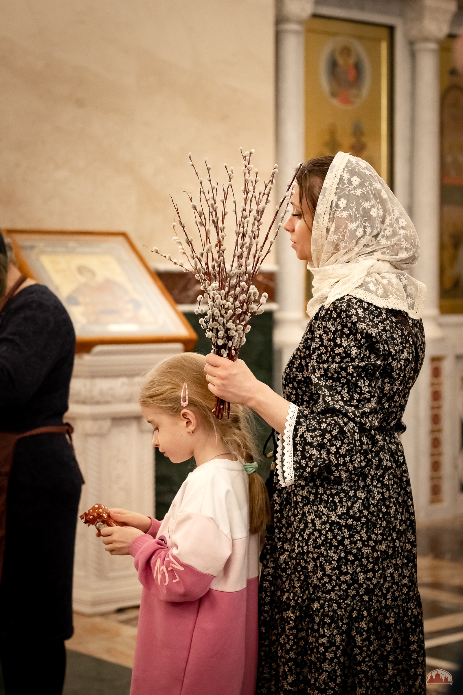 По традиции в этот день было совершено освящение ветвей вербы и прошла ярмарка приходских мастеров.