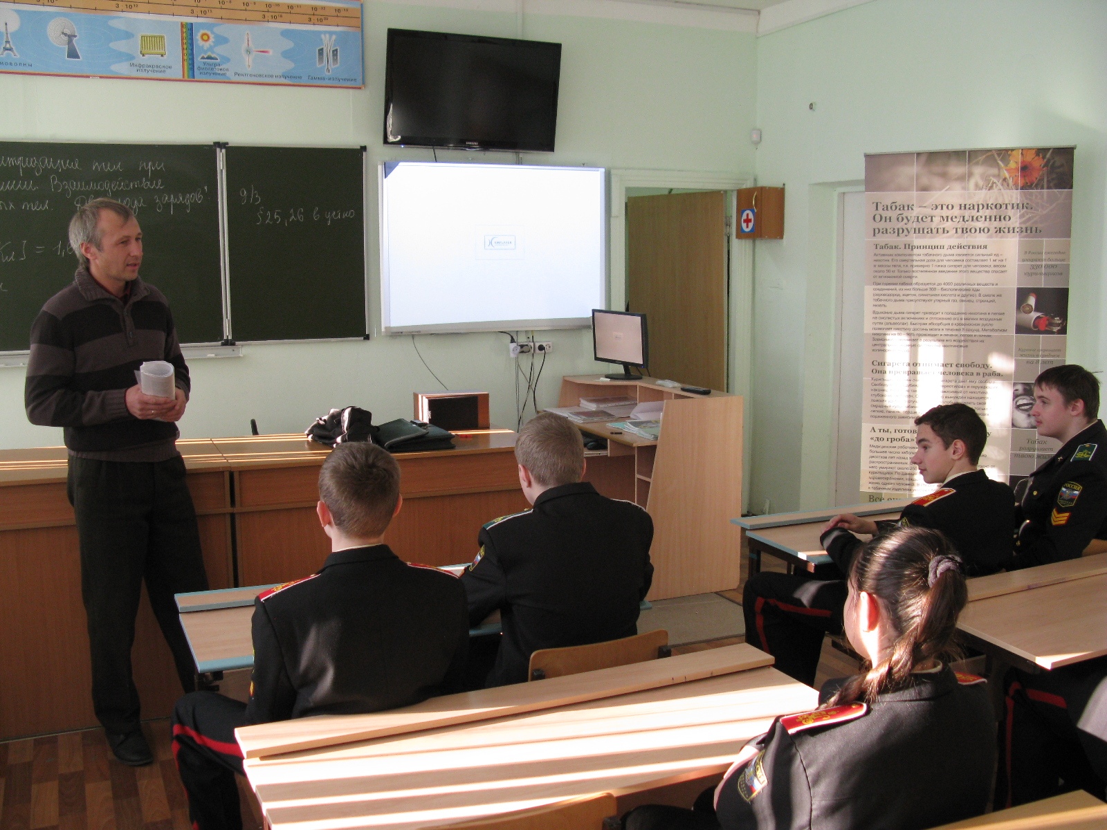 5 декабря 2014 года специалист благотворительного фонда "Я без мамы" Игорь Журавлев провел урок о вреде курения для девятых классов Второго Донского Императора Николая II кадетского корпуса ДГТУ.