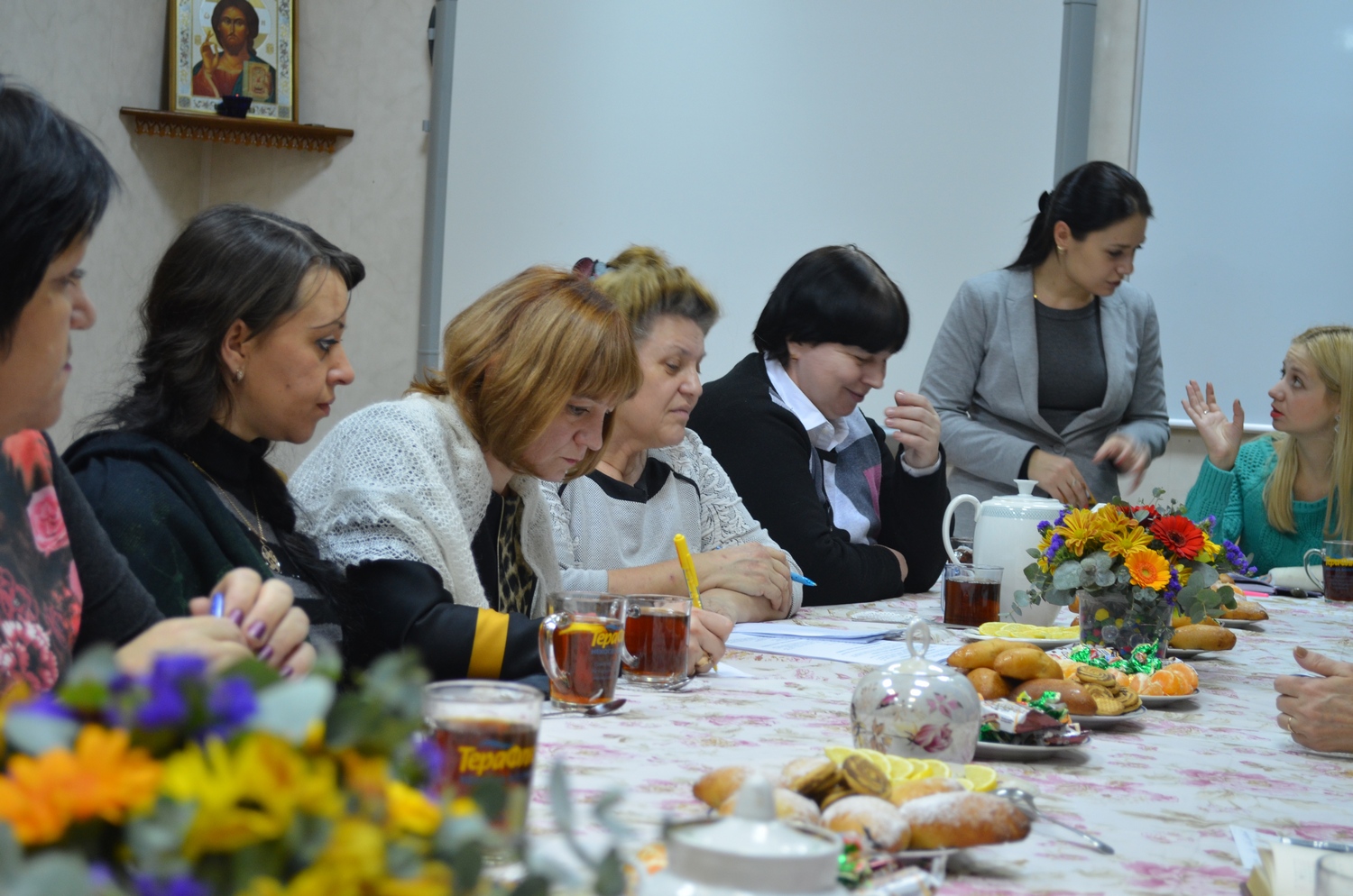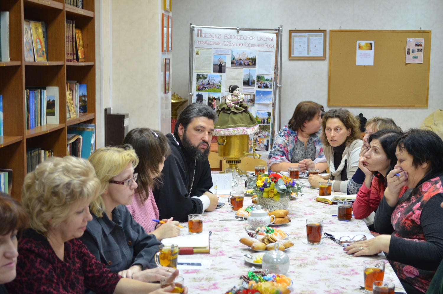 5 декабря 2014 года на нашем приходе состоялась встреча настоятеля прихода святого Георгия Победоносца протоиерея Валерия Волощука с завучами школ Советского района и директорами воскресных школ нашего храма и храма святого Георгия Победоносца (ул. Коммунистический). Поводом для встречи стал предстоящий Рождественский фестиваль, который уже во второй раз будет проводится в январе 2015 года. За чаепитеем представители школ обсудили организационные вопросы, создали творческую группу, назначили дату фестиваля. Руководство всех школ с радостью поддержало идею сделать этот праздник ежегодным.