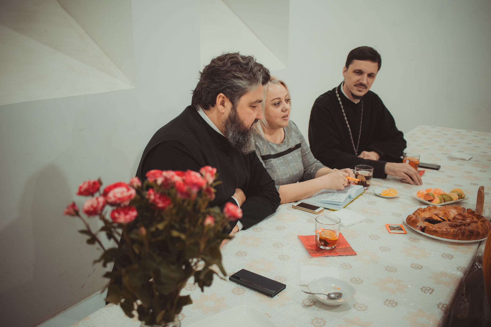 Во встрече приняли участие благочинный приходов Западного округа иерей Александр Литвиненко, настоятель прихода протоиерей Валерия Волощук, главный специалист по школам отдела образования Советского района Лилия Сергеевна Изюмцева, представители нашей воскресной школы и заместители директоров общеобразовательных учреждений Советского района.