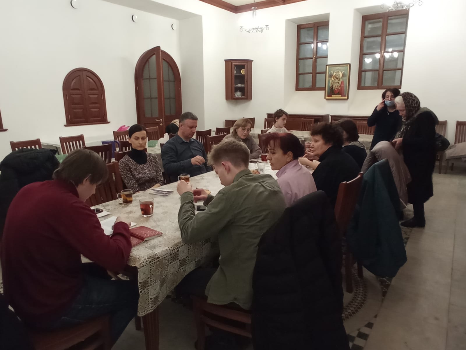 На встрече мы читали и обсуждали отрывки из святоотеческих трудов, посвящённых данной теме. В частности – из «Рассказа блаженной Феодоры о мытарствах» и «Повести о Таксиоте воине». Интересна мысль о том, что на мытарствах душа каждого из нас узнает, какова она на самом деле. То есть во время земной жизни человек может не видеть своих грехов и, следовательно, не приносить за них покаяние. И тогда при прохождении мытарств его душа увидит, сколько беззаконий на ней лежит. Как тут не вспомнить слова из великопостной молитвы Ефрема Сирина, которая совсем скоро будет читаться на богослужениях: «Ей, Господи, Царю, даруй ми зрети моя прегрешения...».