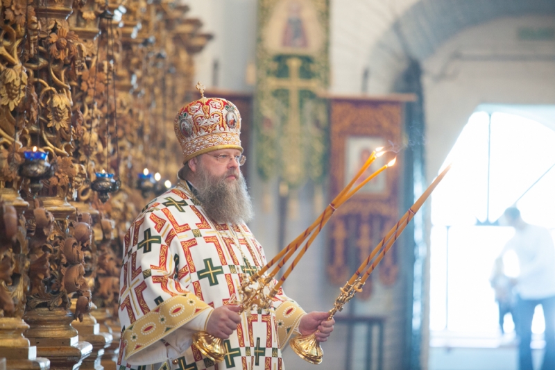 Затем архипастырь приветствовал всех участников богослужения. Владыка митрополит обратился ко смыслу Евангельского повествования о том, как Господь исцелил человека, который был слепым от рождения, и исцелил совершенно особенным образом: «Человек прозрел от благодати Божией, которая коснулась его. От той силы Божественной, которая стала действовать в человеке. Вопреки расхожему мнению о том, что не должно исцеляться в день субботний; человек, который исцелил себя, был грешным, а не праведным. Вопреки всем расхожим доводам и всем логическим законам мышления исцеленный человек твердил только одно: „Не знаю, кто Вы, но знаю человека, который исцелил меня,и знаю, что Бог его слышит.Бог действует через него“. И когда открылись глаза этого человека, то он попросил Господа и Спасителя научить его веровать, дать веру, показать Бога. Господь сказал: «Это тот, с кем ты сейчас разговариваешь». Исцеленный человек поклонился Господу и Спасителю».