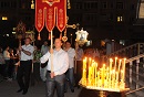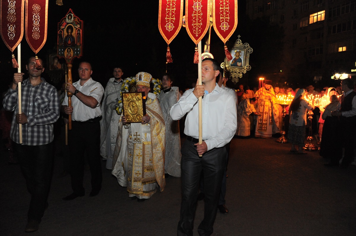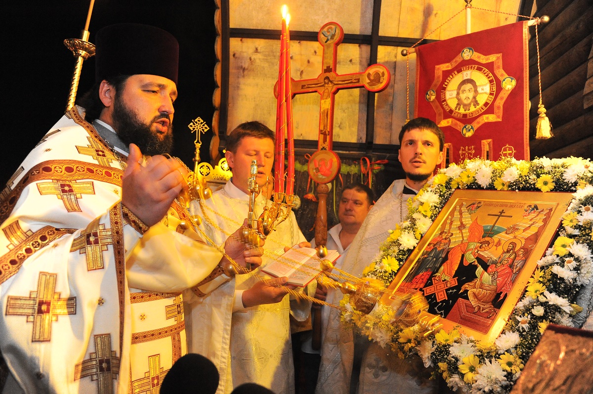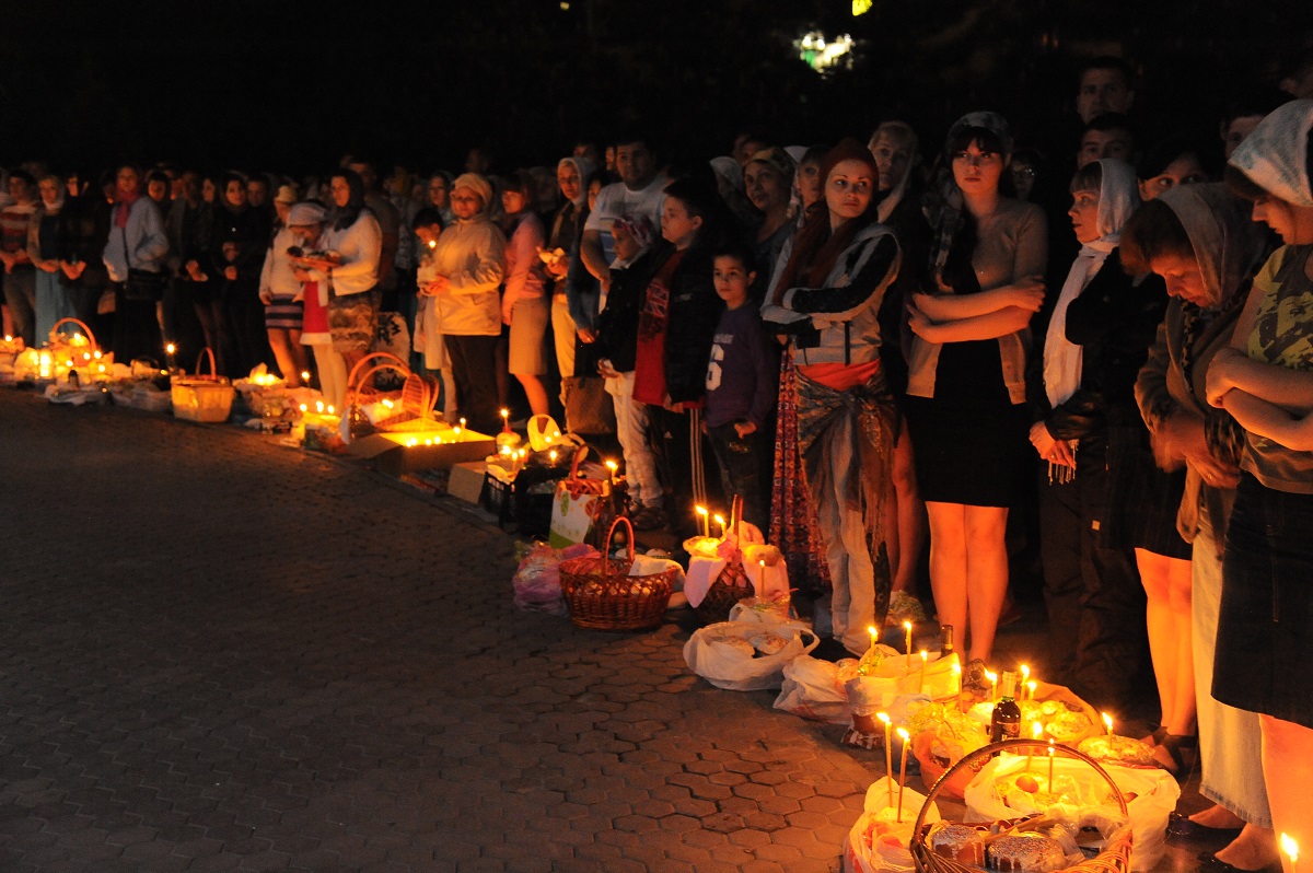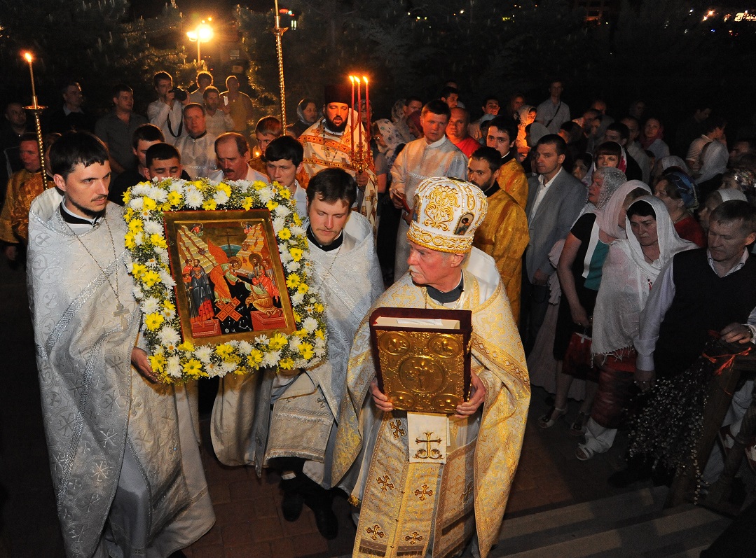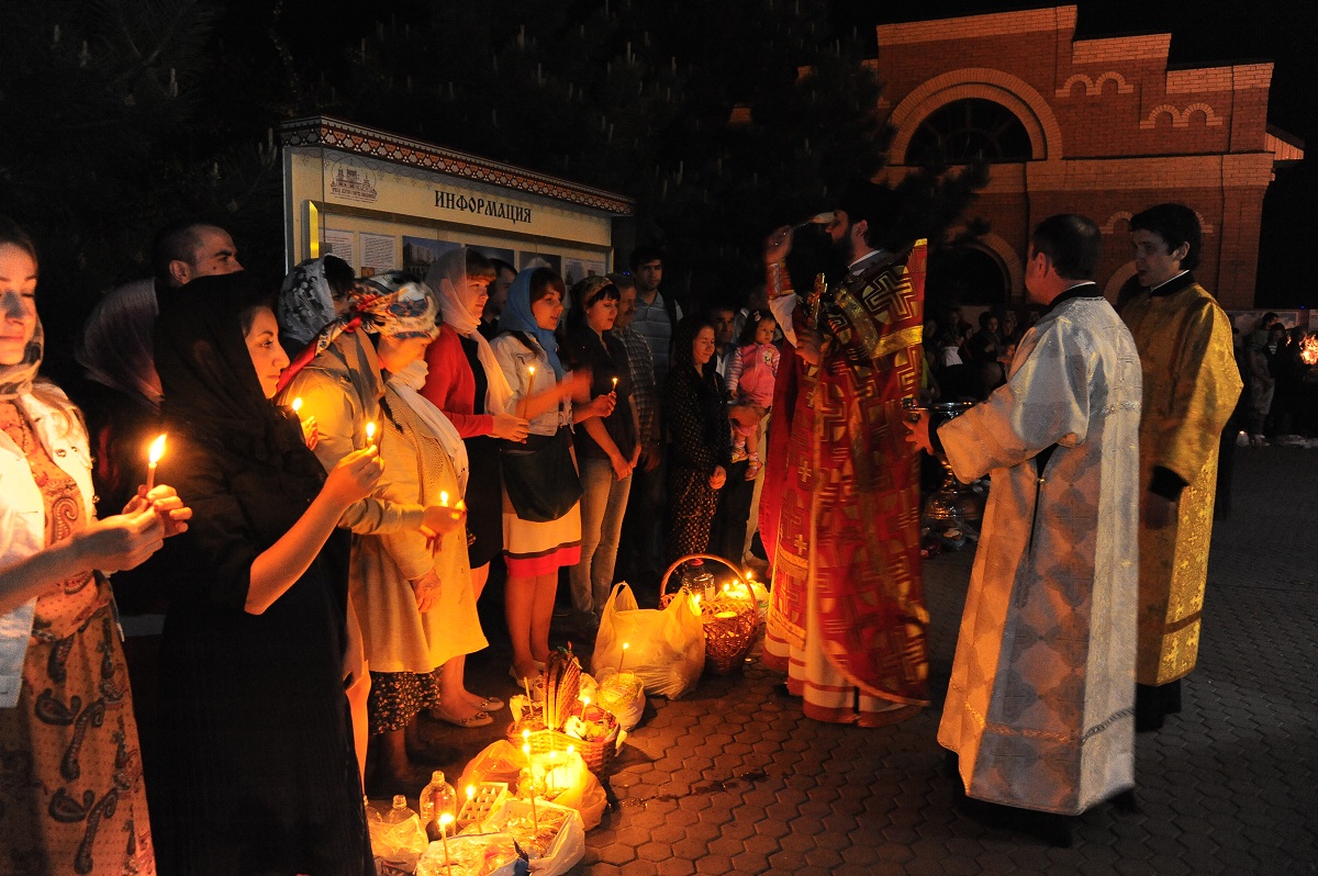 Под пение стихиры «Воскресение Твое, Христе Спасе» вокруг храма Иоанна Воина был совершен крестный ход. За богослужением пели женский и мужской хоры, под руководством регентов Юлии Шашковой и Михаила Акименко.