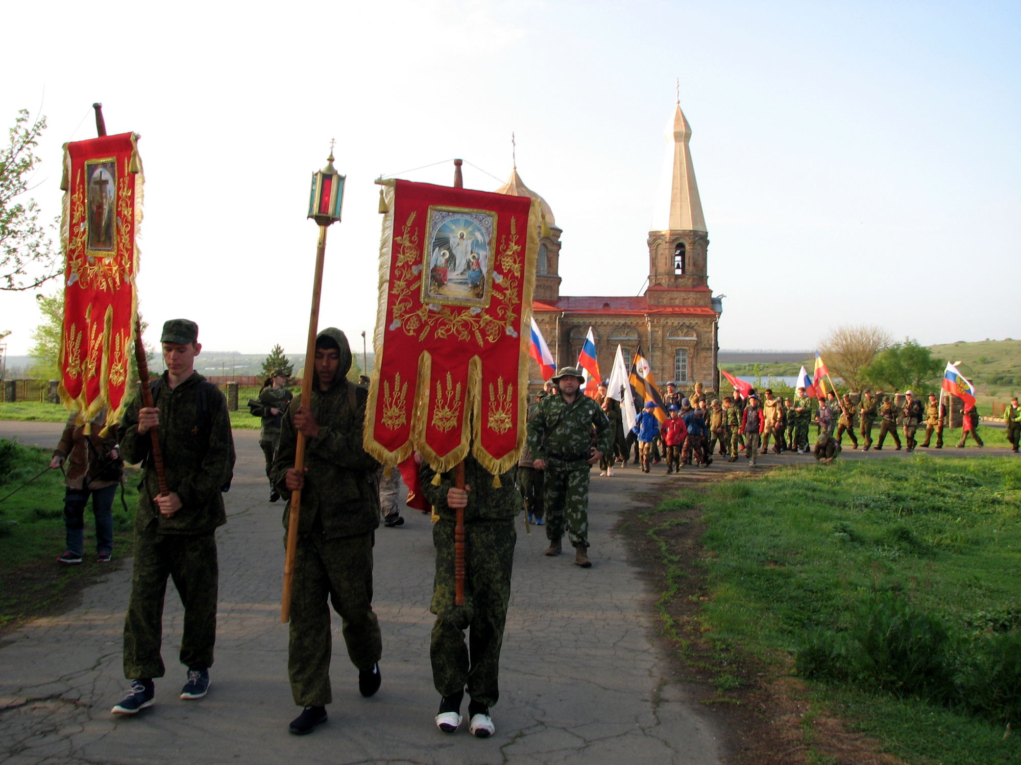 Маршрут похода проходил по местам боев Миус-фронта. Через город Новошахтинск, сёла Агрофеновка, Крюково, Русское и Куйбышево. На протяжении всего маршрута священослужители и участники совершали панихиды по погибшим воинам.