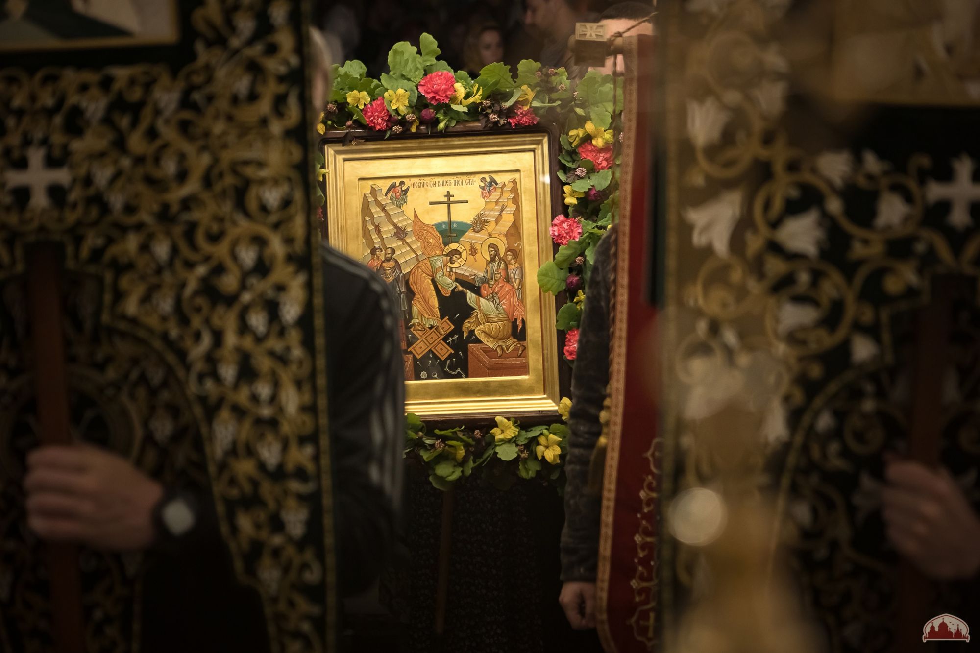 Воскресения день, просветимся людие: Пасха, Господня Пасха! От смерти бо к жизни, и от земли к Небеси, Христос Бог нас преведе, победную поющия.
